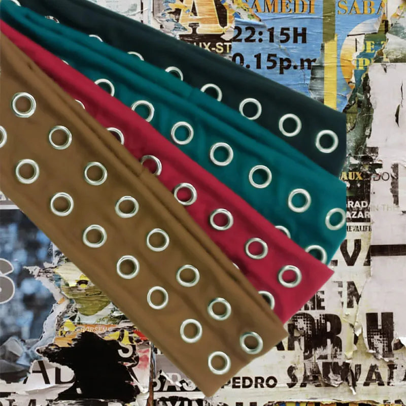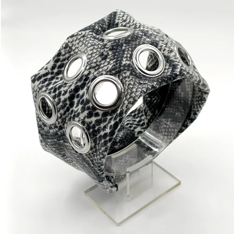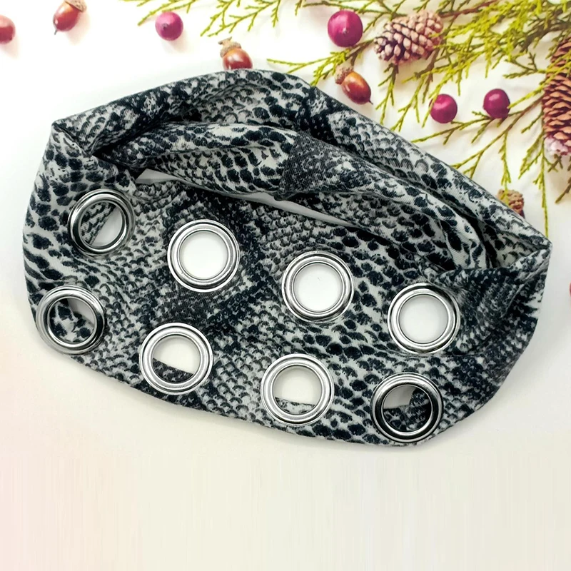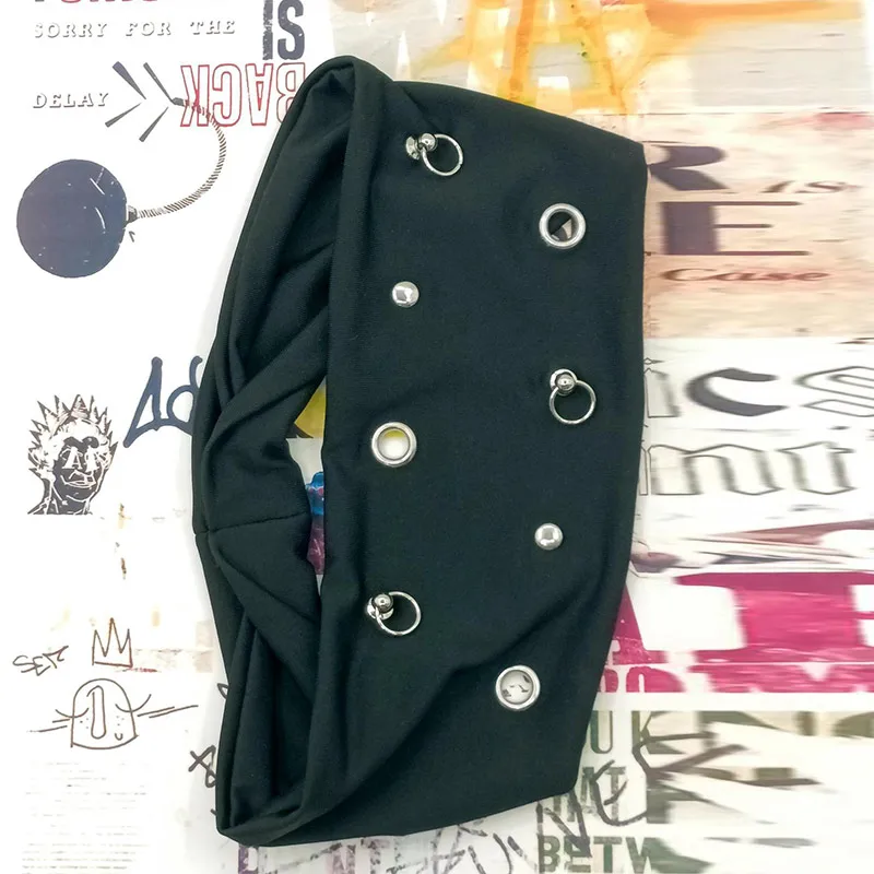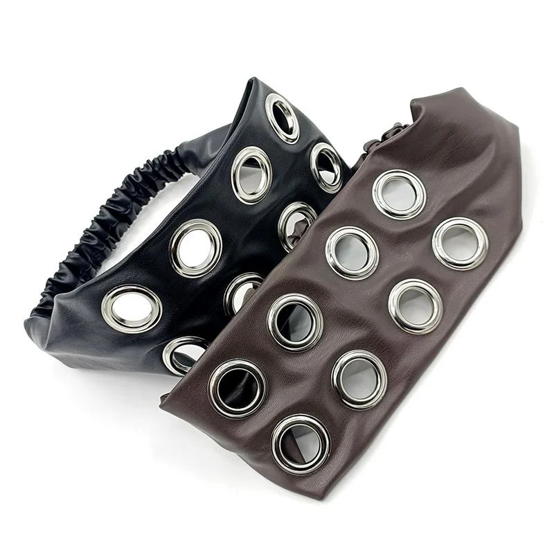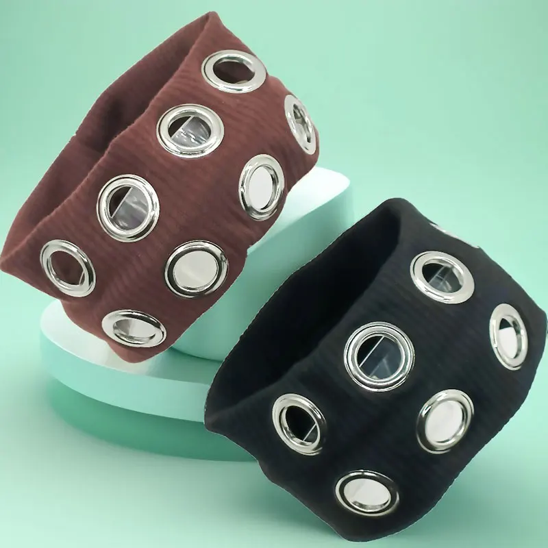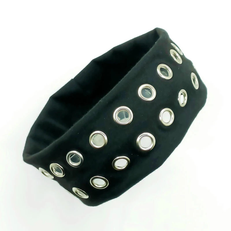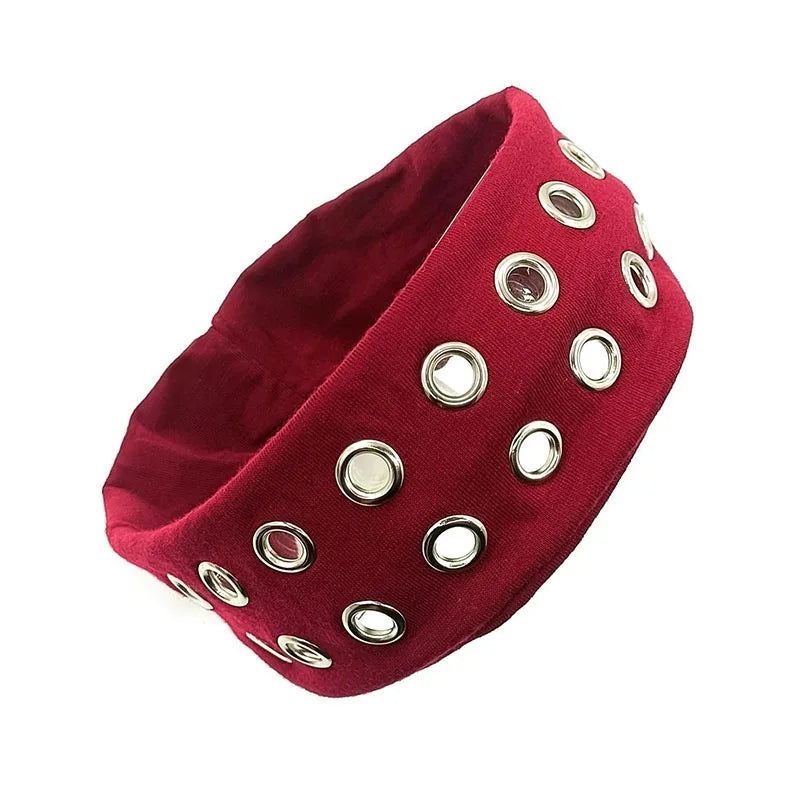 Make a bold statement with this hollowed-out eyelet wide elastic headband, blending steampunk and metal rock flair with everyday function. Crafted from comfortable cotton, this stretchy fashion bandana is perfect for women seeking a unique and edgy accessory for sports, casual wear, or standout styling.