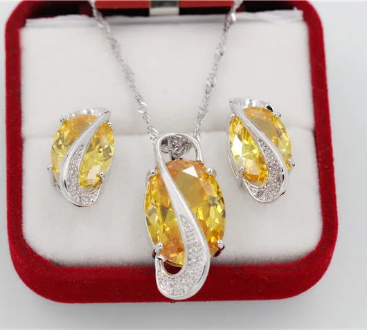 Gold Color Jewelry Set Yellow Crystal Jewelry Sets Necklace Pendant Earrings Set