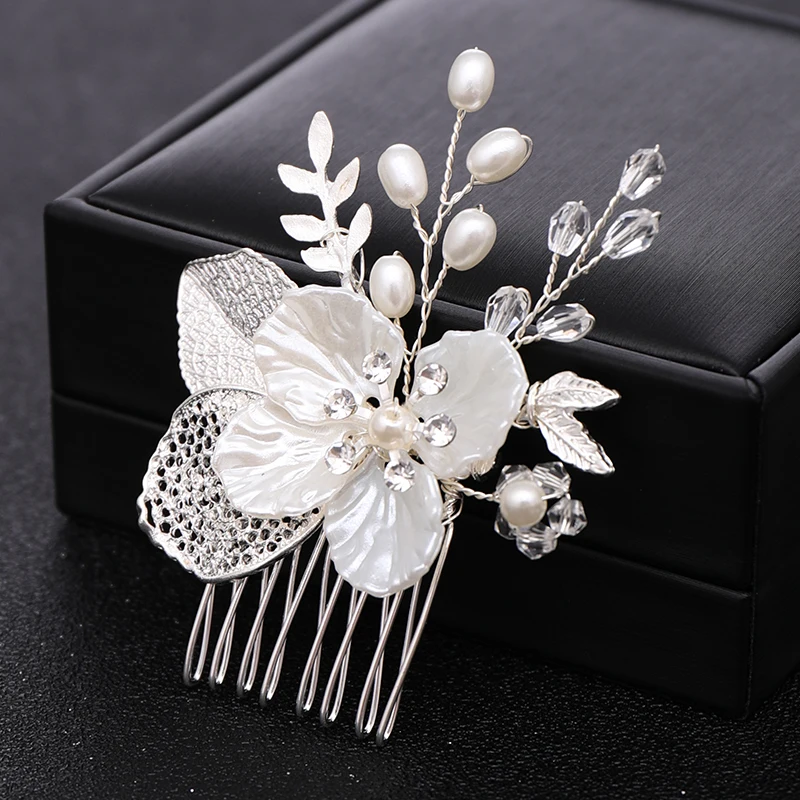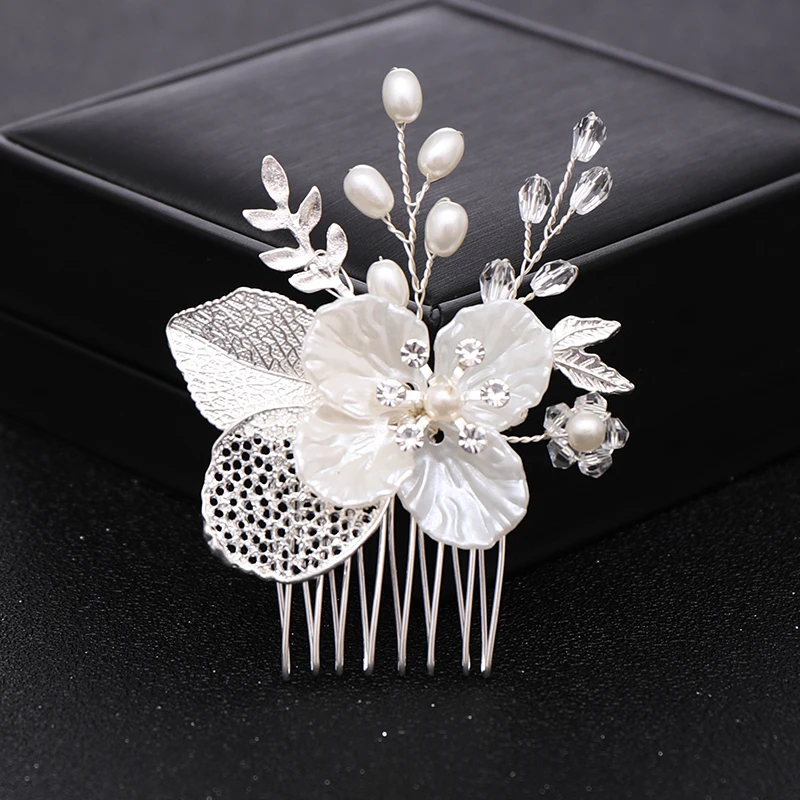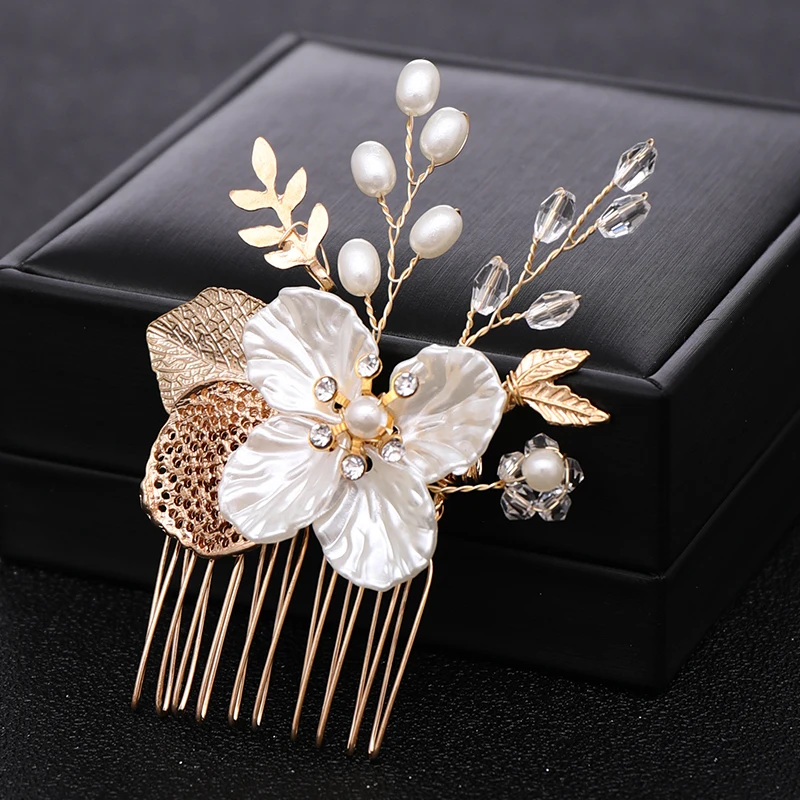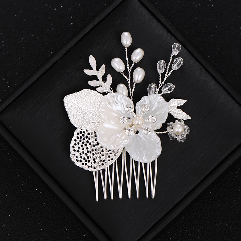 Gold Or Silver Pearl Flower Leaf Crystal Hair Comb Pin Band For Women Wedding Bridal Hair Accessories Jewelry Comb Gift