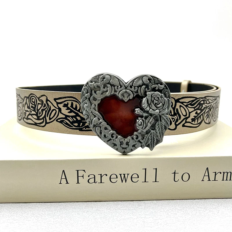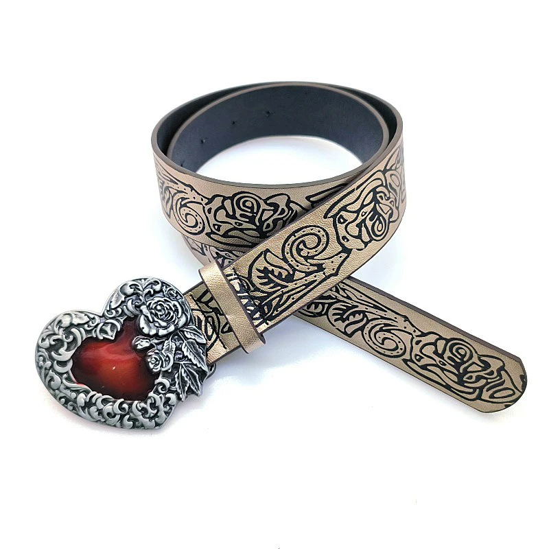 Gothic Punk Leather Belt For Women Metal Red Heart Buckle Waist Strap Jeans Decorative Waistband Accessories