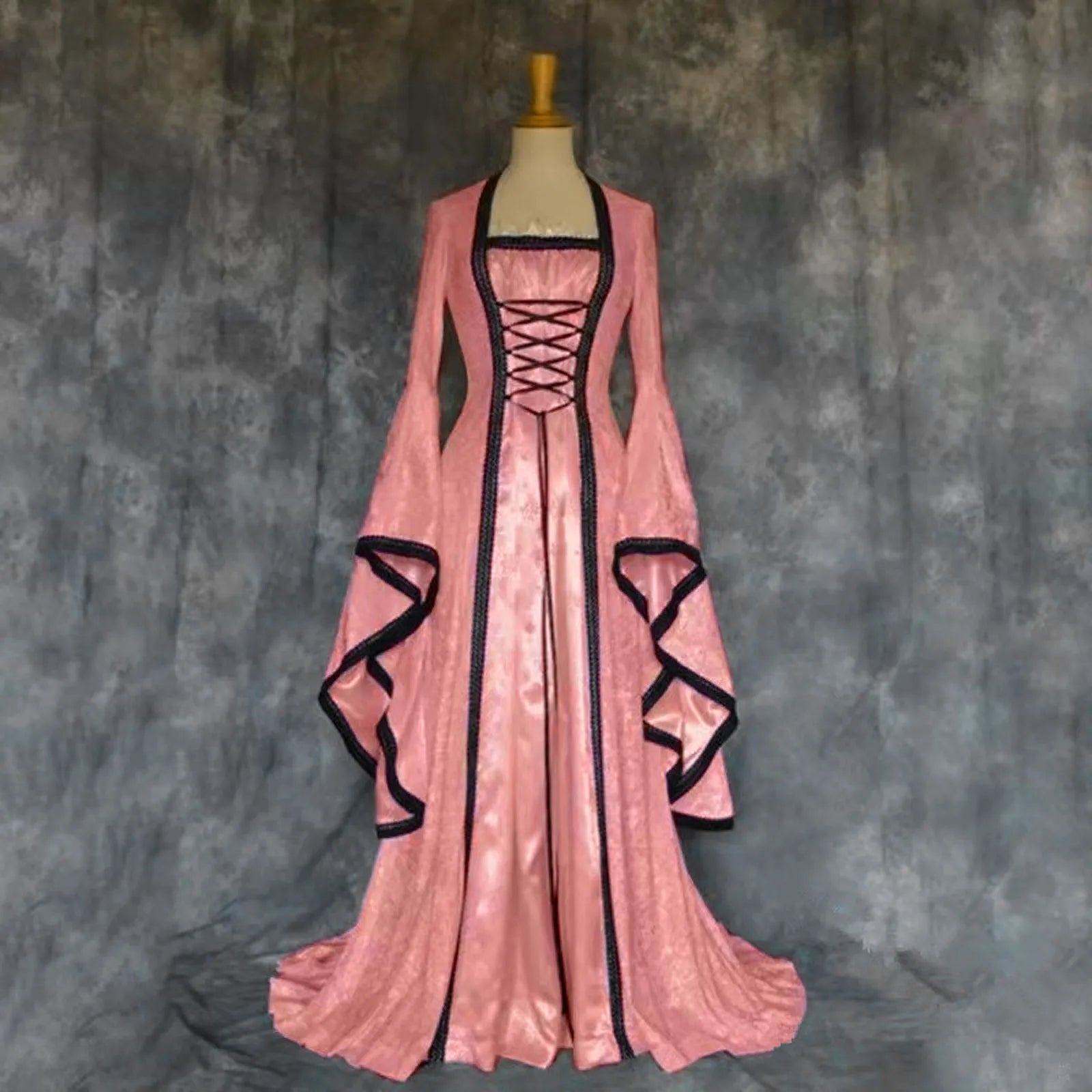 Step into a fairytale with this vintage-inspired, floor-length dress featuring a soft A-line silhouette and a natural waistline. Crafted from polyester with natural fiber composition and slight stretch, it offers both comfort and elegance. The square collar and full-length bell swing sleeves evoke a charming medieval vibe, while the solid color and pullover style enhance its timeless appeal. Perfect for themed events, renaissance fairs, or anyone channeling romantic, old-world style.