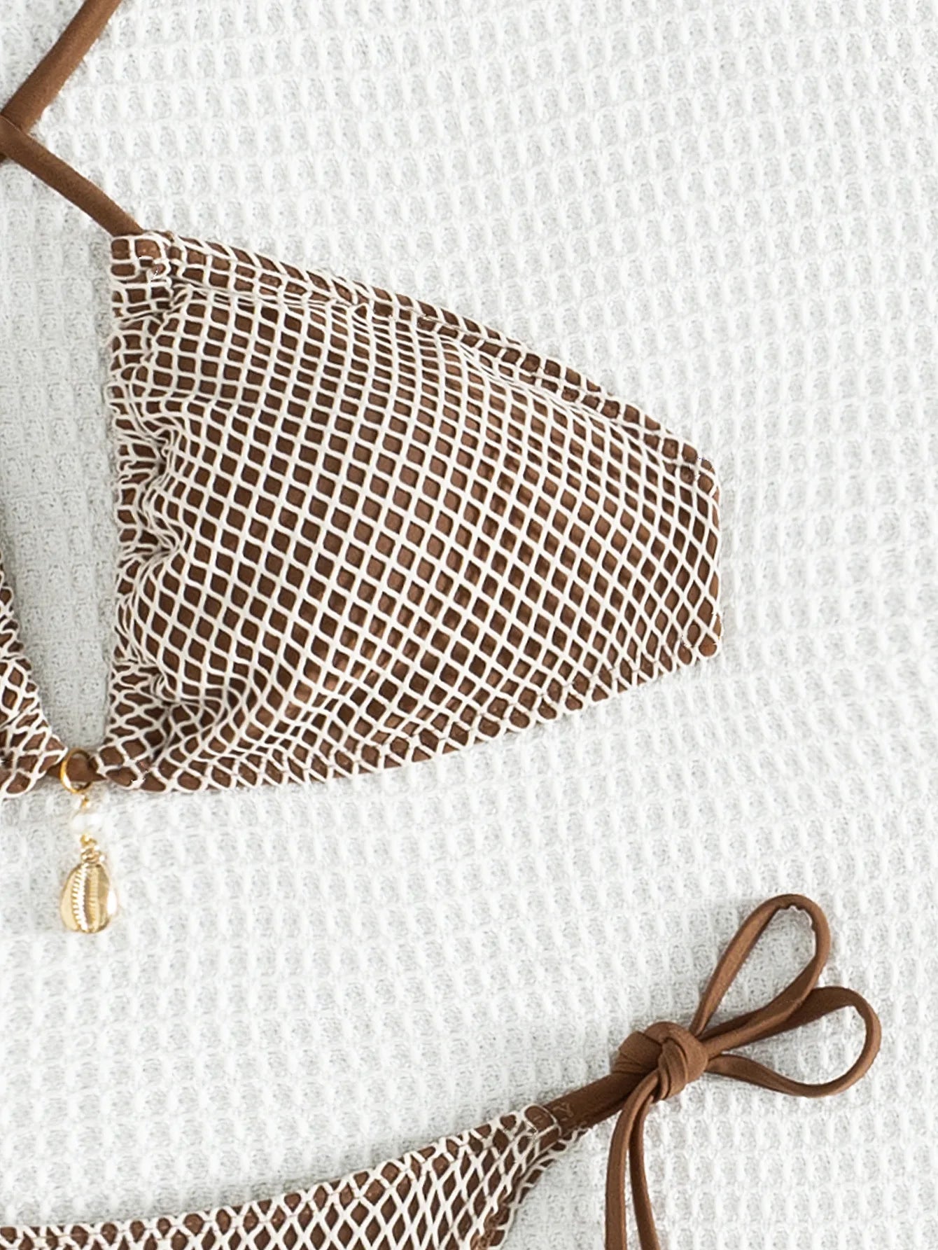 Grid Bikini Set for Women 2 Piece Swimsuit Halter Lace-up Backless Thong Beach Vacation Swimwear