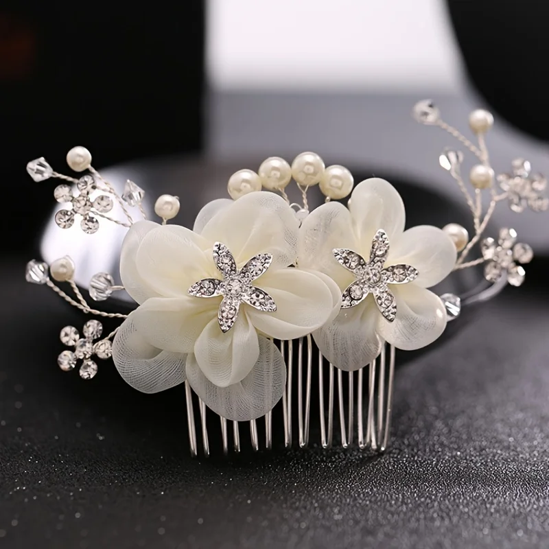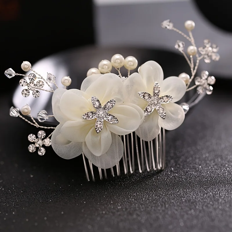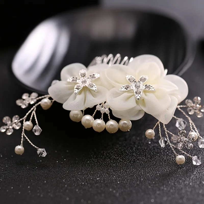 Hair Comb Flower Hair Ornaments Hair Comb Pearl Rhinestone Headpiece For Women Girls Headdress Floral Jewelry