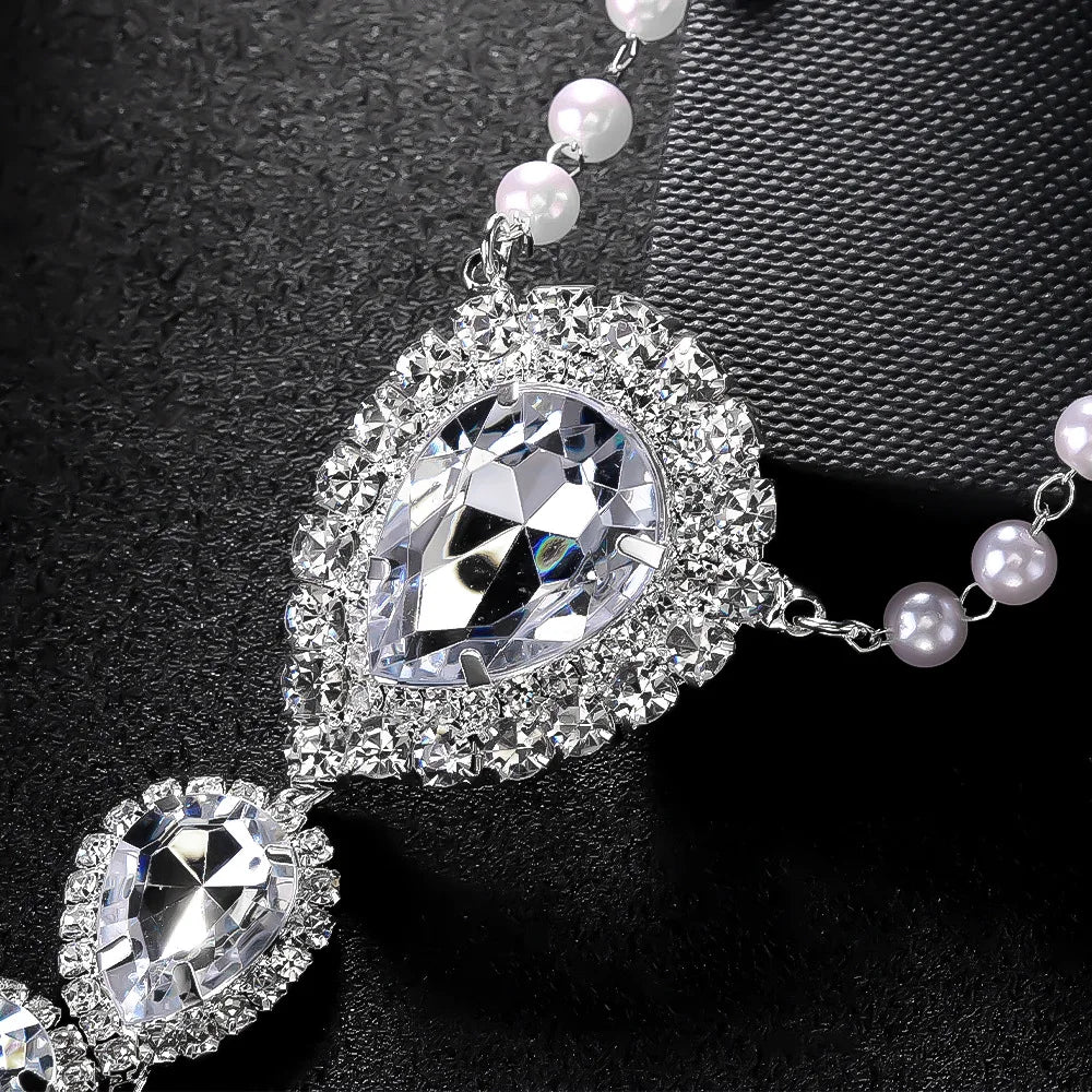 This handmade pearl anklet features a geometric design crafted from crystal and copper. With a trendy style, it's perfect for adding a delicate and stylish touch to any look. This customized anklet combines elegance with uniqueness, making it a standout accessory.