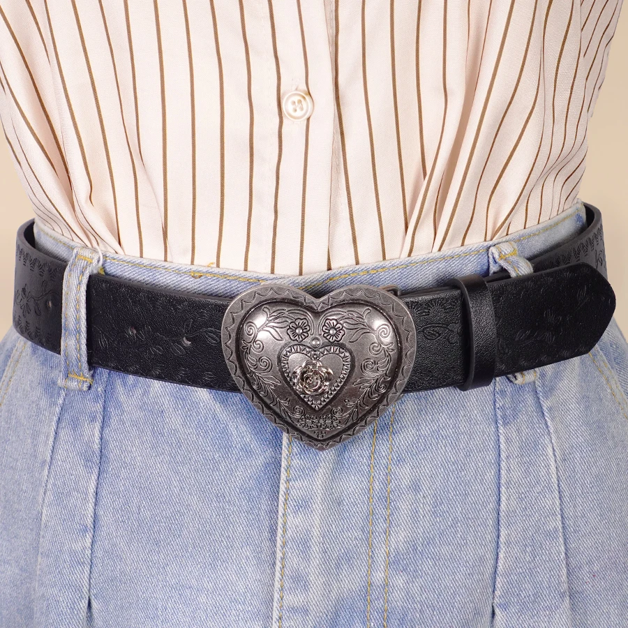 Add a touch of romance to your outfit with this 3.8 cm wide heart-shaped women's casual belt, crafted from durable PU material. Featuring a retro embossed carved design and a stylish buckle, it’s the perfect accessory to complement dresses, jeans, suits, or shirts. Ideal for casual wear, this belt enhances your look with a unique and elegant flair.