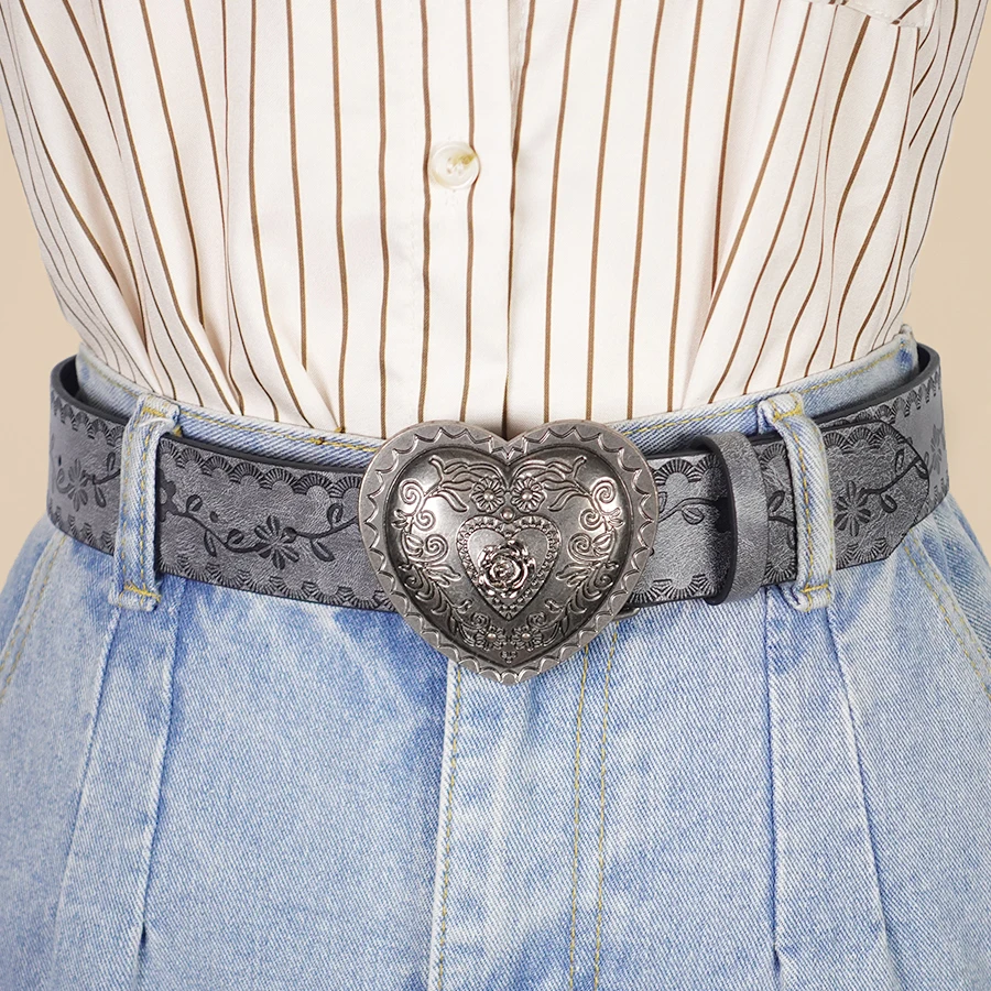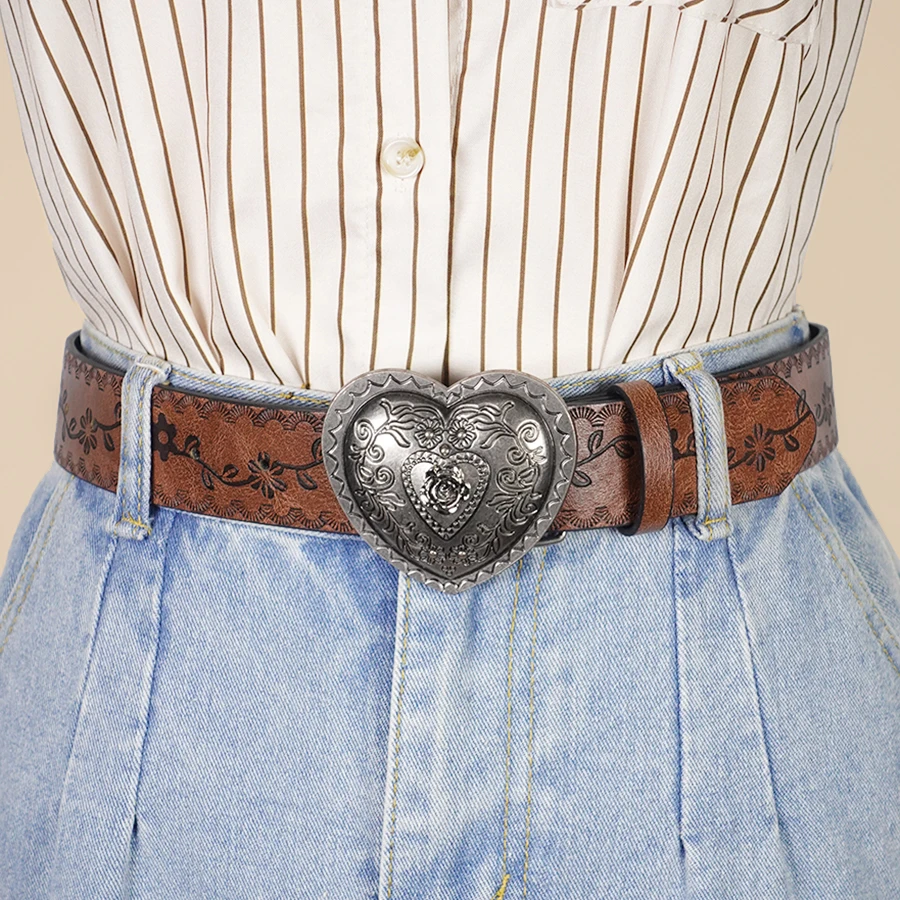 Heart Shaped Women's Casual Belt, Retro Embossed Carved Women's Belt, Dress, Jeans, Suit, Shirt Decoration
