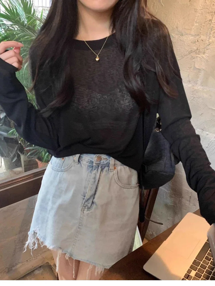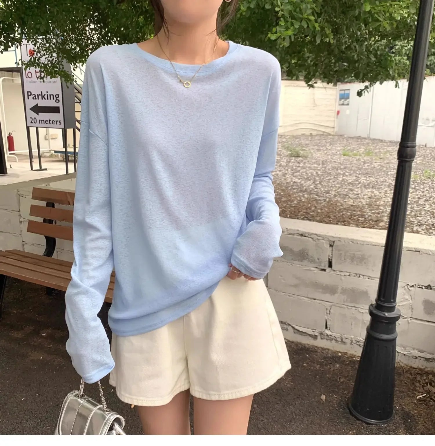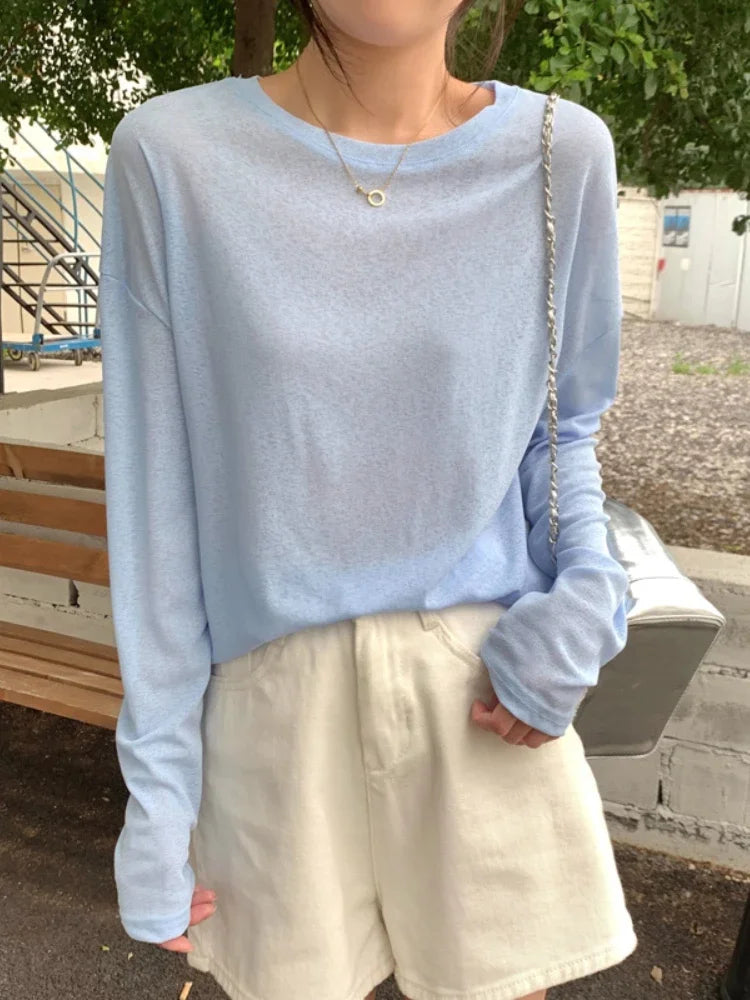 This lightweight pullover is perfect for office wear during the summer. Made from a soft blend of cotton and acrylic, it features a relaxed, loose fit for all-day comfort. The solid color design and O-neck collar create a simple yet stylish look, while the very thin knit ensures breathability during warmer months. With regular long sleeves, this versatile piece can easily transition from work to casual outings.