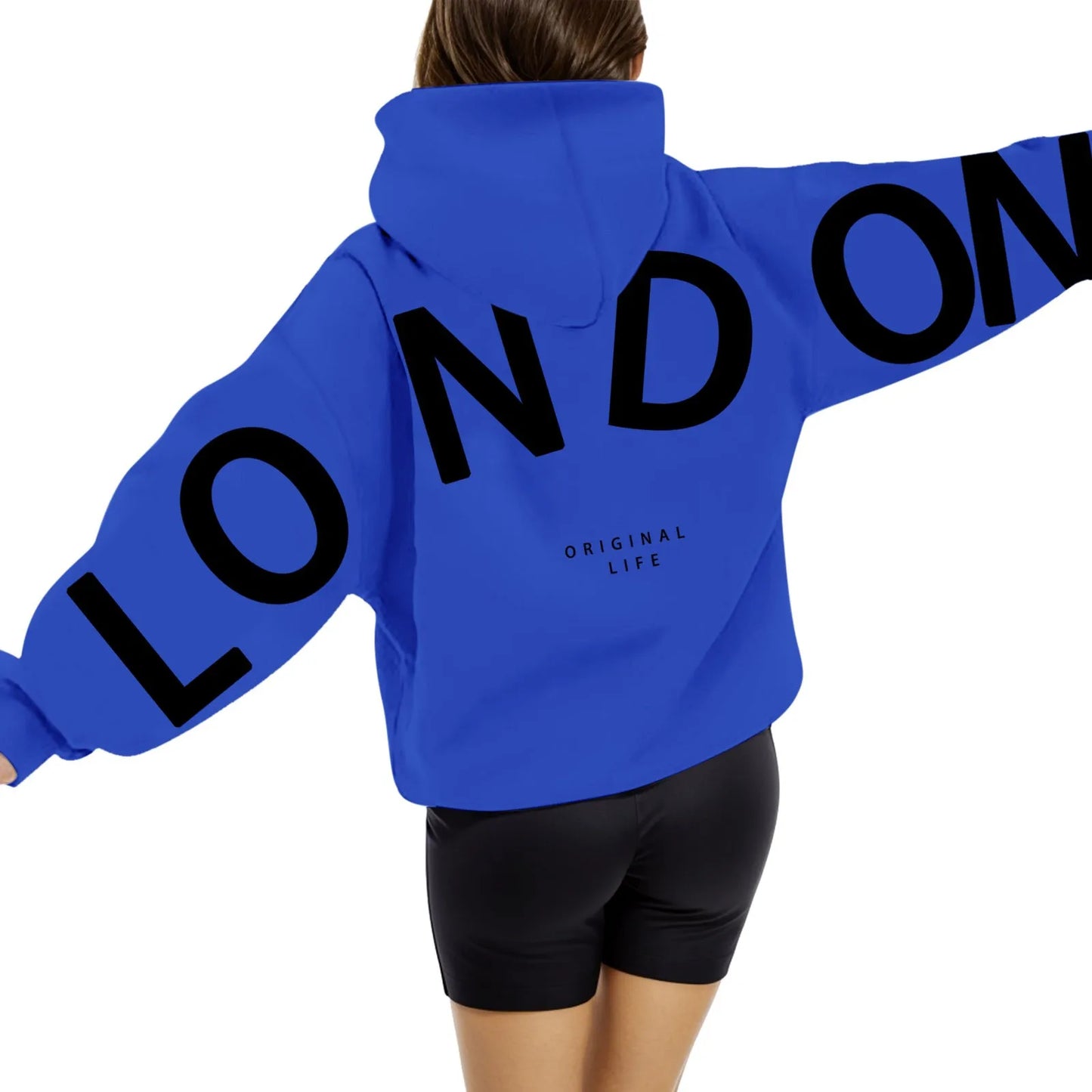 This women's hoodie is the perfect blend of comfort and style for casual wear. Made from soft polyester with slight stretch, it offers a cozy and breathable fit. Featuring a loose fit and regular sleeve style, this hoodie provides an easygoing, relaxed silhouette. The hooded design adds extra warmth and versatility, while the letter print pattern brings a trendy touch. With a pullover closure and regular length, this hoodie is ideal for lounging, running errands, or layering for a casual, laid-back look. A must-have addition to any wardrobe!