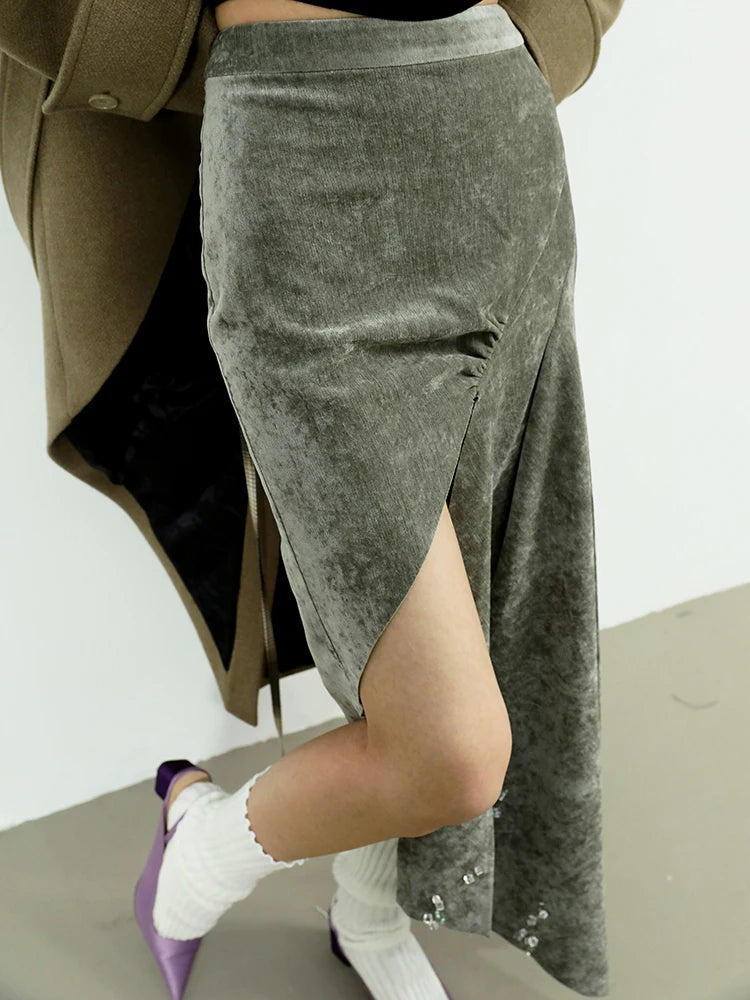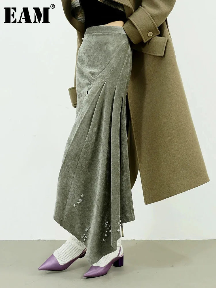 A fun, comfortable, and stylish option for all seasons! The jersey fabric is soft and breathable, making it perfect for wearing throughout the year. The empire waistline provides a flattering shape while the loose fit offers comfort and ease of movement. The asymmetrical silhouette gives the skirt a modern, fresh look, and the mid-calf skirt length keeps it versatile for different occasions. The solid pattern in a gray-green color is subtle yet stylish, and the rhinestone decoration adds a touch of glamour, making it stand out in a chic and understated way. It’s the kind of dress that can easily transition from day to night, depending on how you style it.