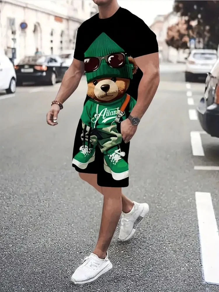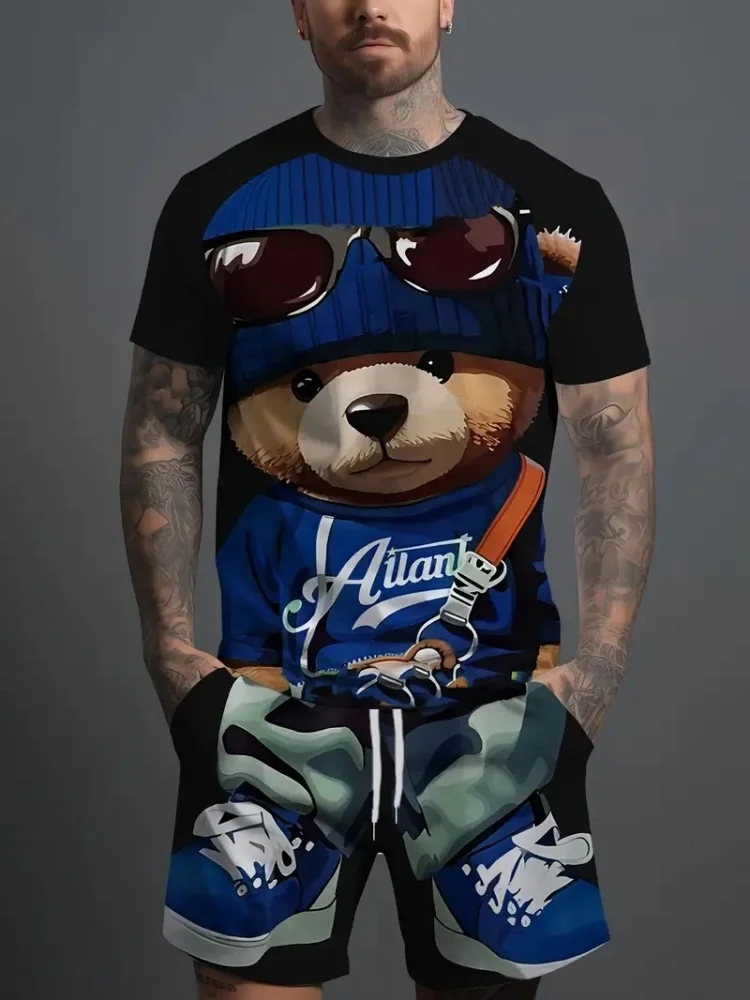Make a bold statement with this Hip Hop Style 3D Cartoon Printed Men’s Two-Piece Set—perfect for shopping, sports, or relaxing. Featuring a personality-packed animal print with applique details, this fashion-forward outfit includes a round-neck short-sleeve tee and matching shorts. Crafted from lightweight polyester, it delivers breathable comfort and standout streetwear flair for spring and summer days.