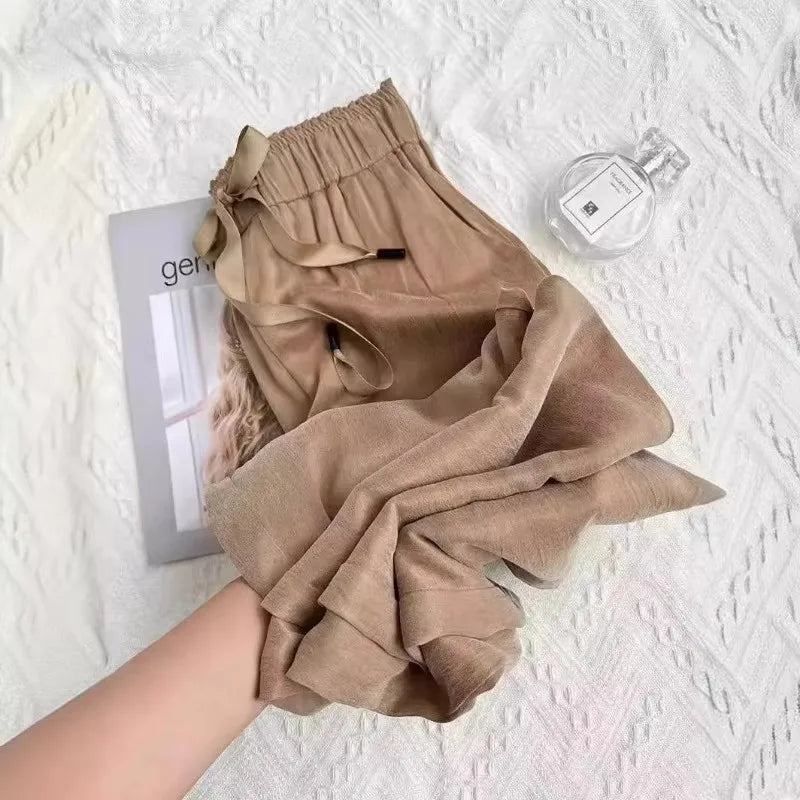 Ice Silk Wide Leg Pants Summer Thin Satin Casual Pants Women's High Waisted Straight Leg Pants Long Trouser