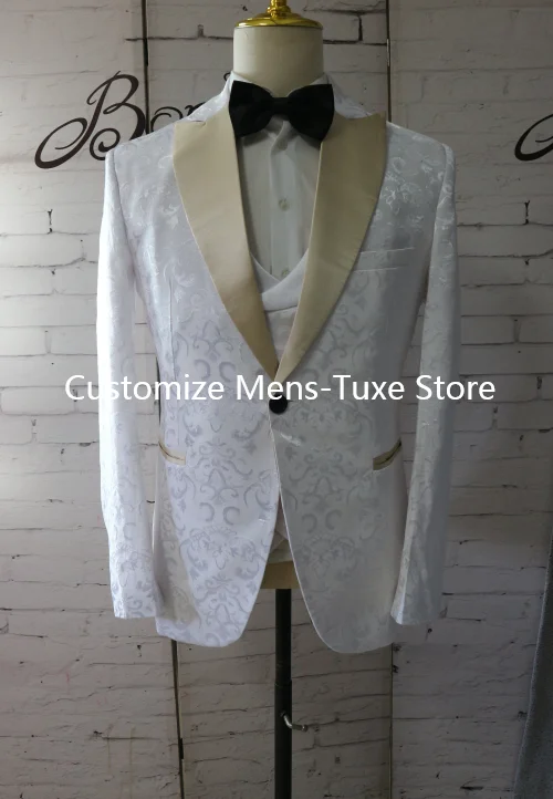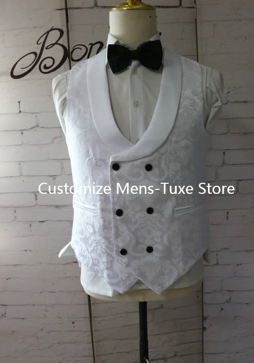 Ivory Men's Wedding Groom Suit 3 Piece Jacket Pants Vest Formal Tuxedo Elegant Men's Custom Suit Bow tie not Included