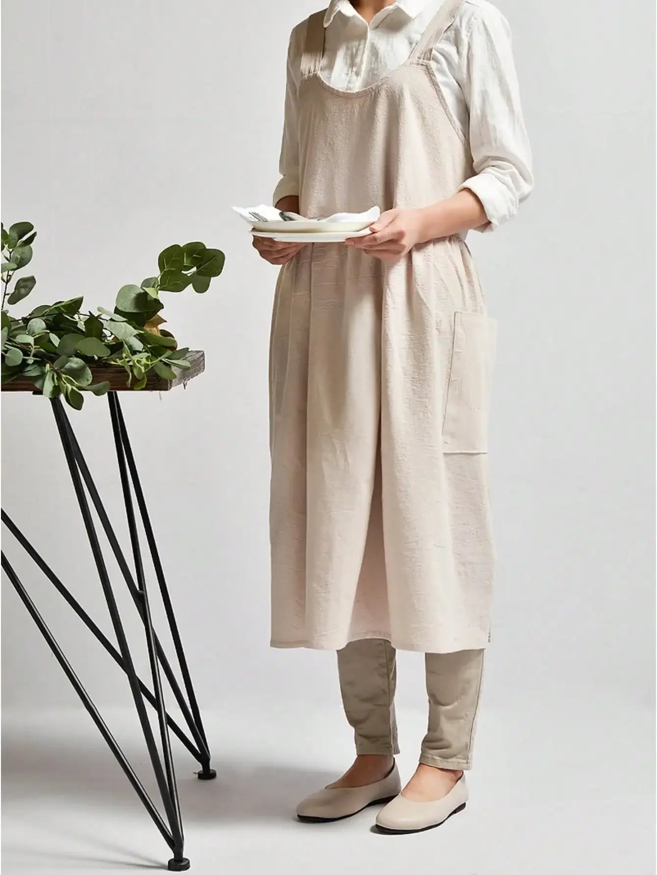 This Japanese Style Linen Apron is made from a blend of 100% cotton and polyester, ensuring durability and comfort. Featuring a stylish cross-back design and handy pockets, it's perfect for a variety of activities like gardening, painting, baking, or cooking. The cute apron dress combines functionality with a touch of charm, making it an ideal choice for those who want to stay stylish while tackling their favorite hobbies or kitchen tasks.
