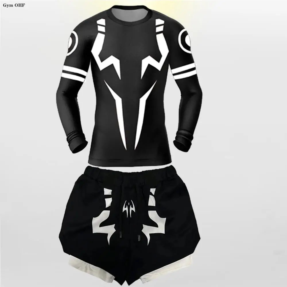 Jujutsu Kaisen Anime Compression T Shirt Suits Men's 2 In 1 Shorts Sport Running Jogging Gym Tracksuit Men Clothing Rashgard MMA