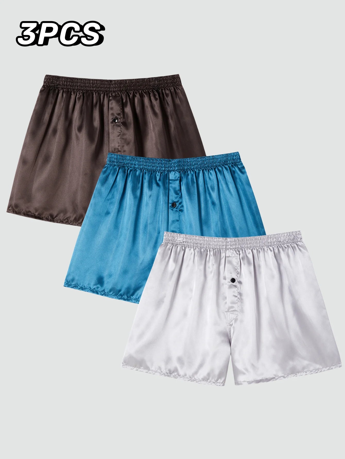 JupiterSecret 3pcs Men's Underwear Satin Casual Boxer Shorts Silk Feeling Sleep Shorts with Elastic Waistband and Button
