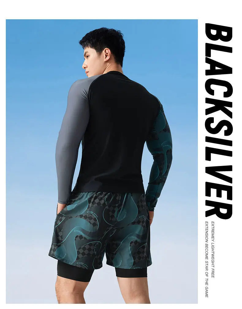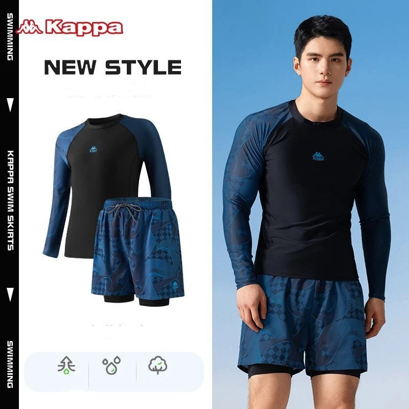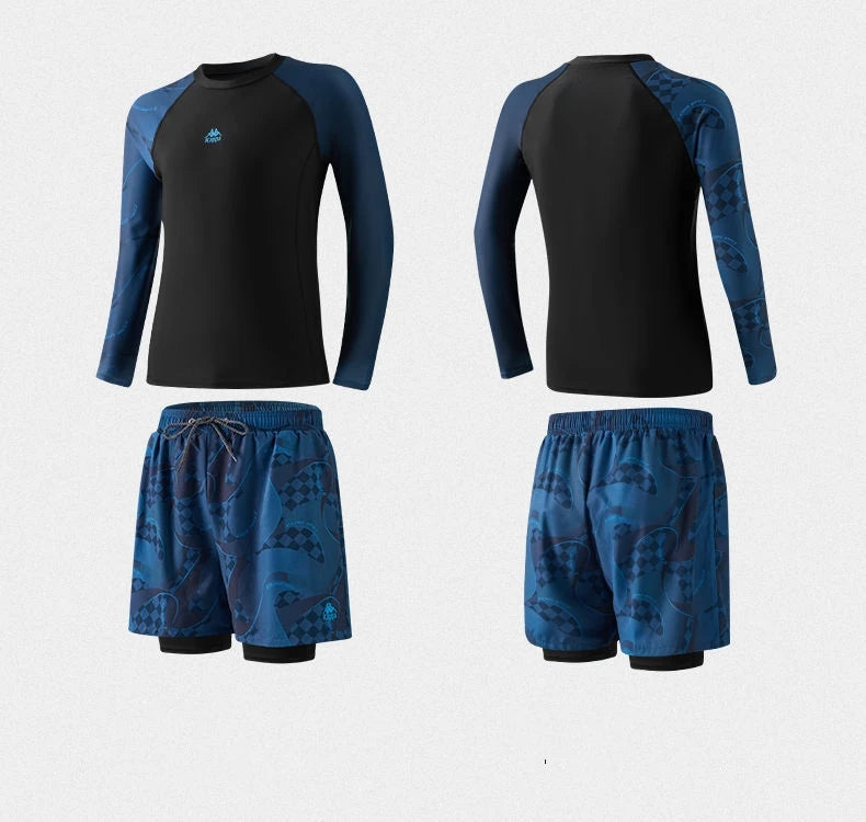 Kapaa Men Two Pieces Professional Outdoor Beach Surfing Swim Shirt Trunks Long Sleeve Quick Dry Water Sport Board Bathing Shorts