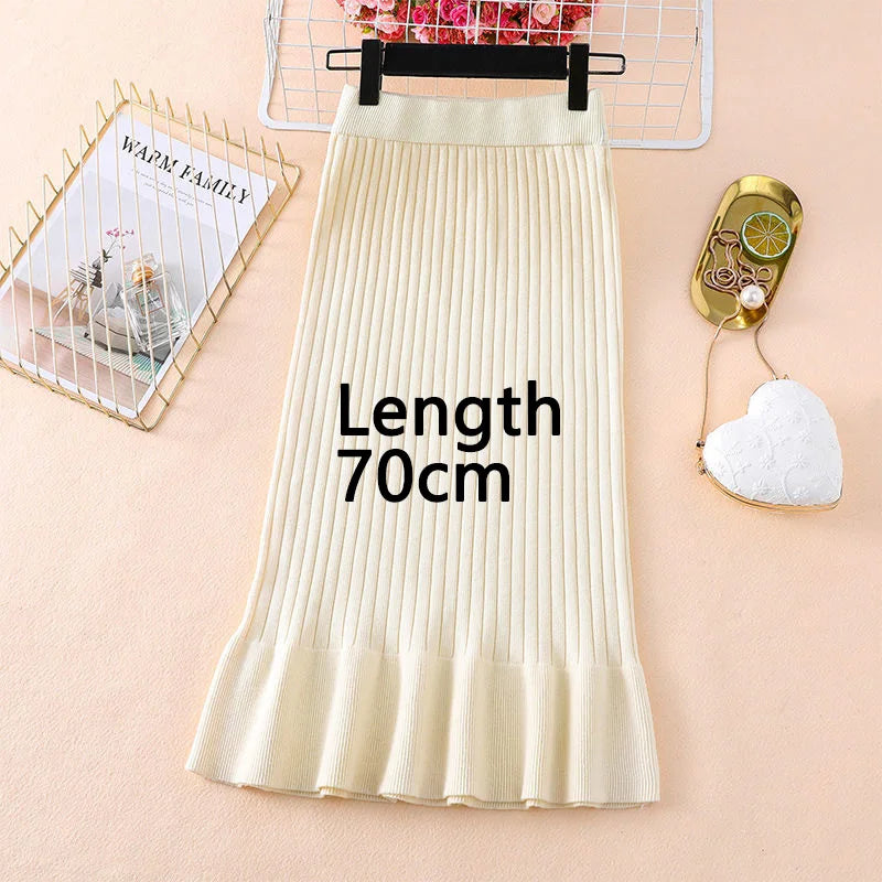 Knitted High Waist Ruffles Mermaid Skirt