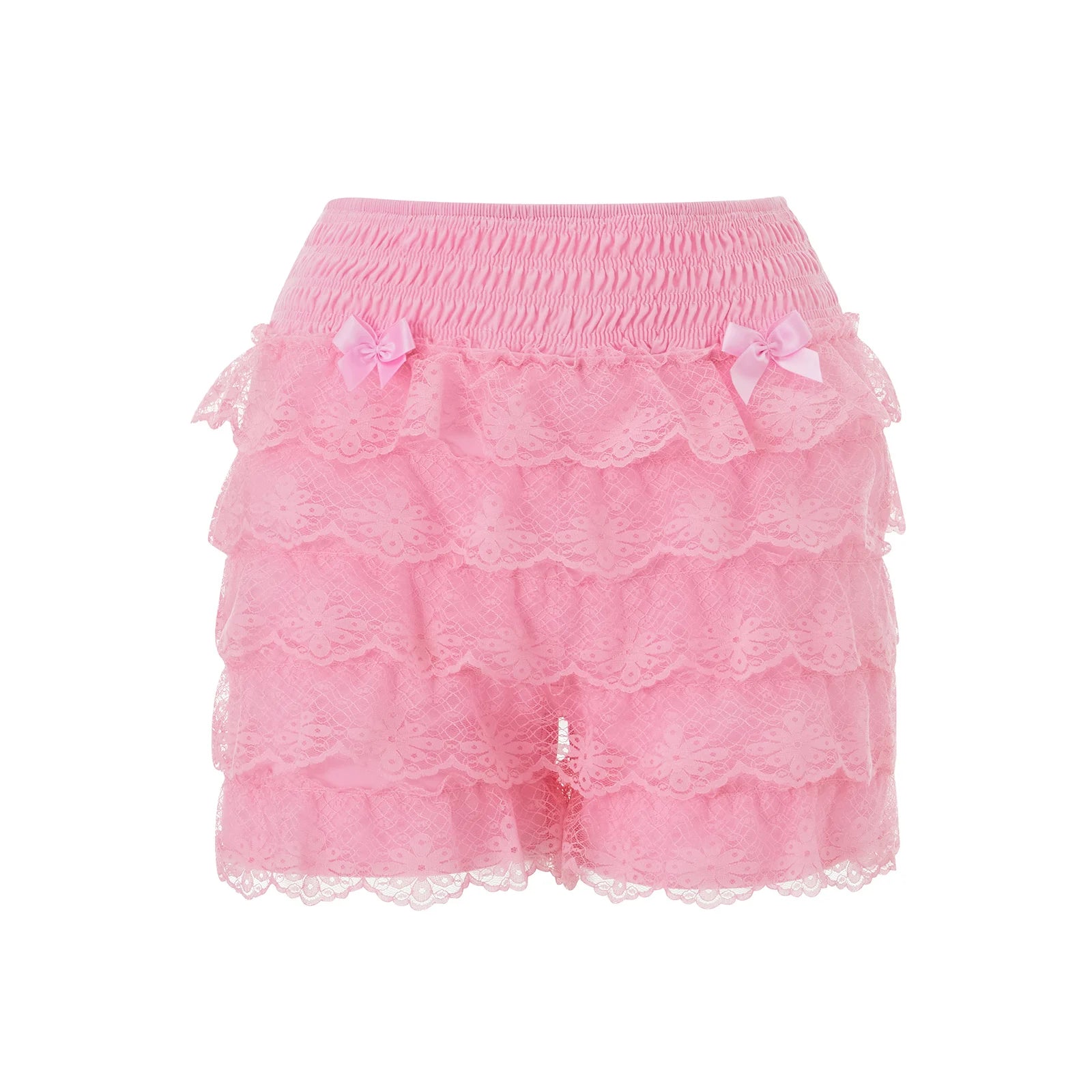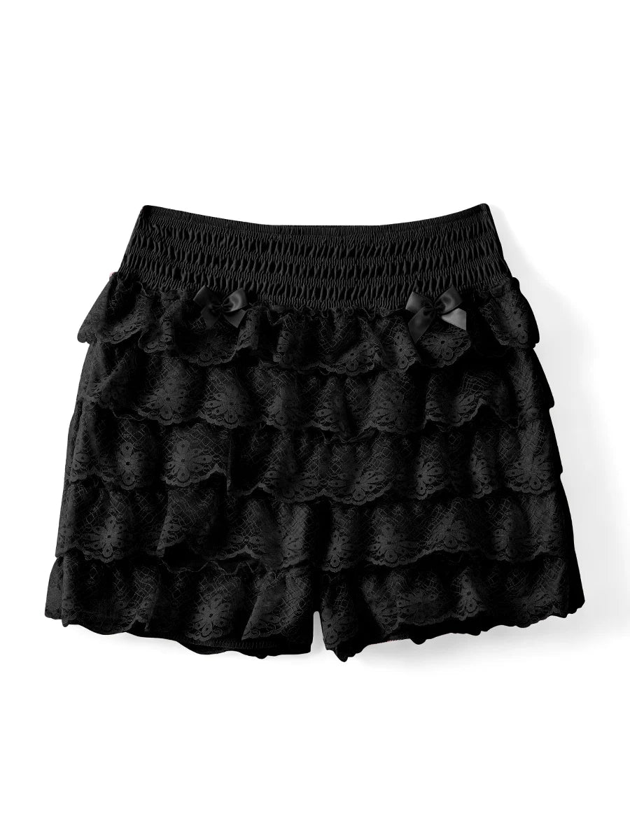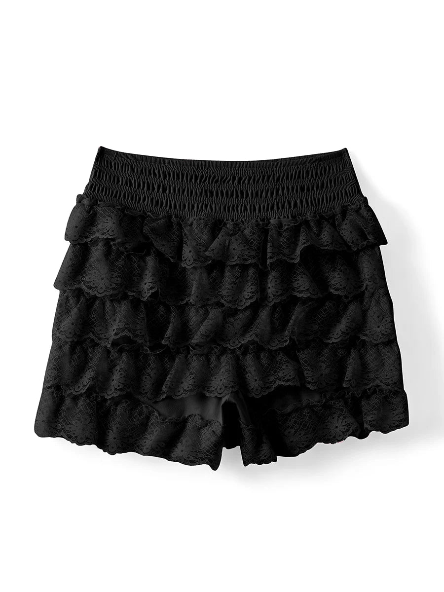 Lace Lingerie Shorts with Elastic Waistband and Tiered Ruffled Design for Bodycon Fit and Style