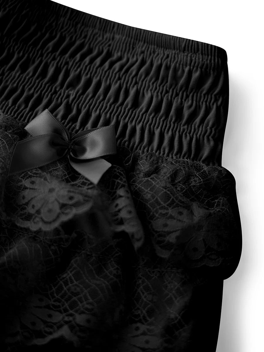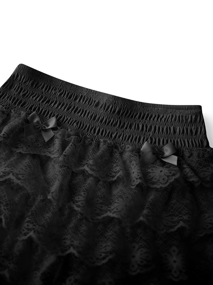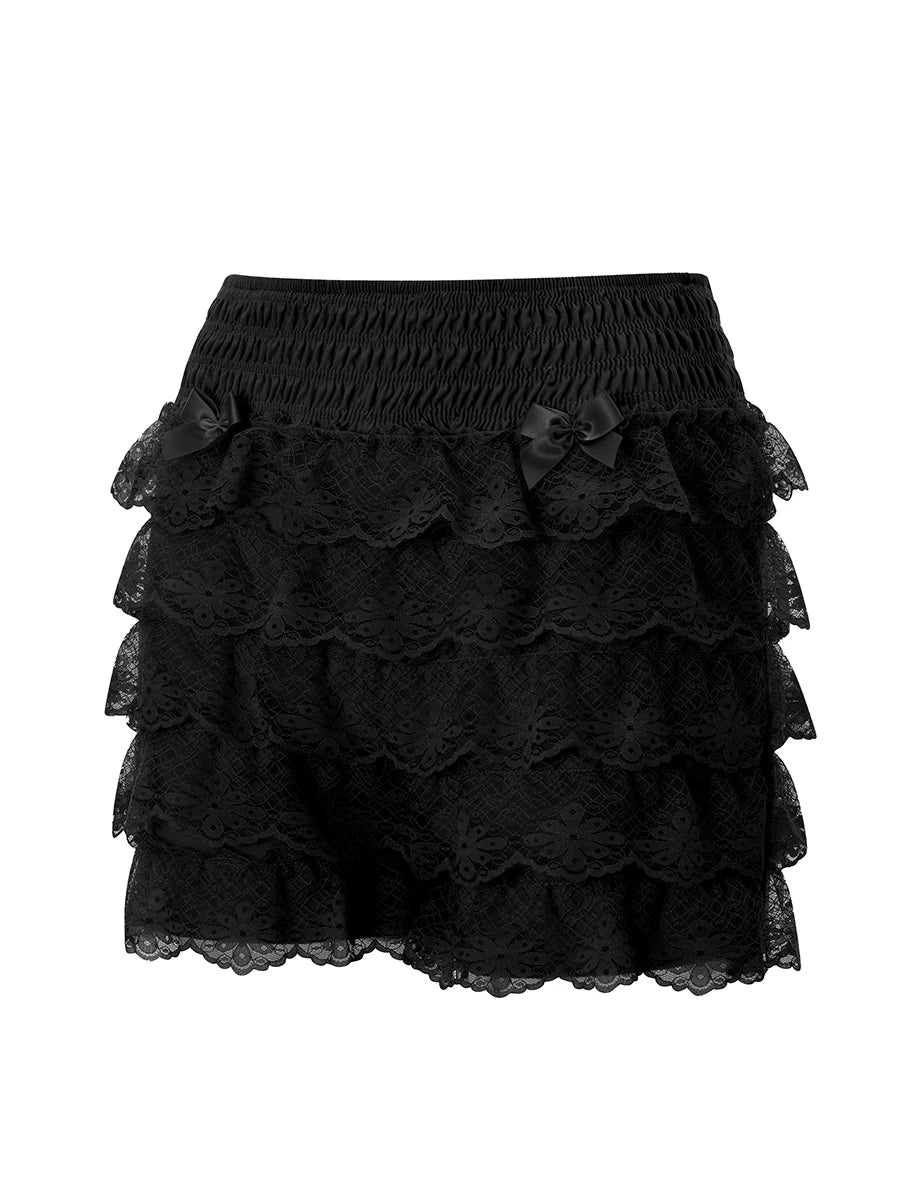 Lace Lingerie Shorts with Elastic Waistband and Tiered Ruffled Design for Bodycon Fit and Style