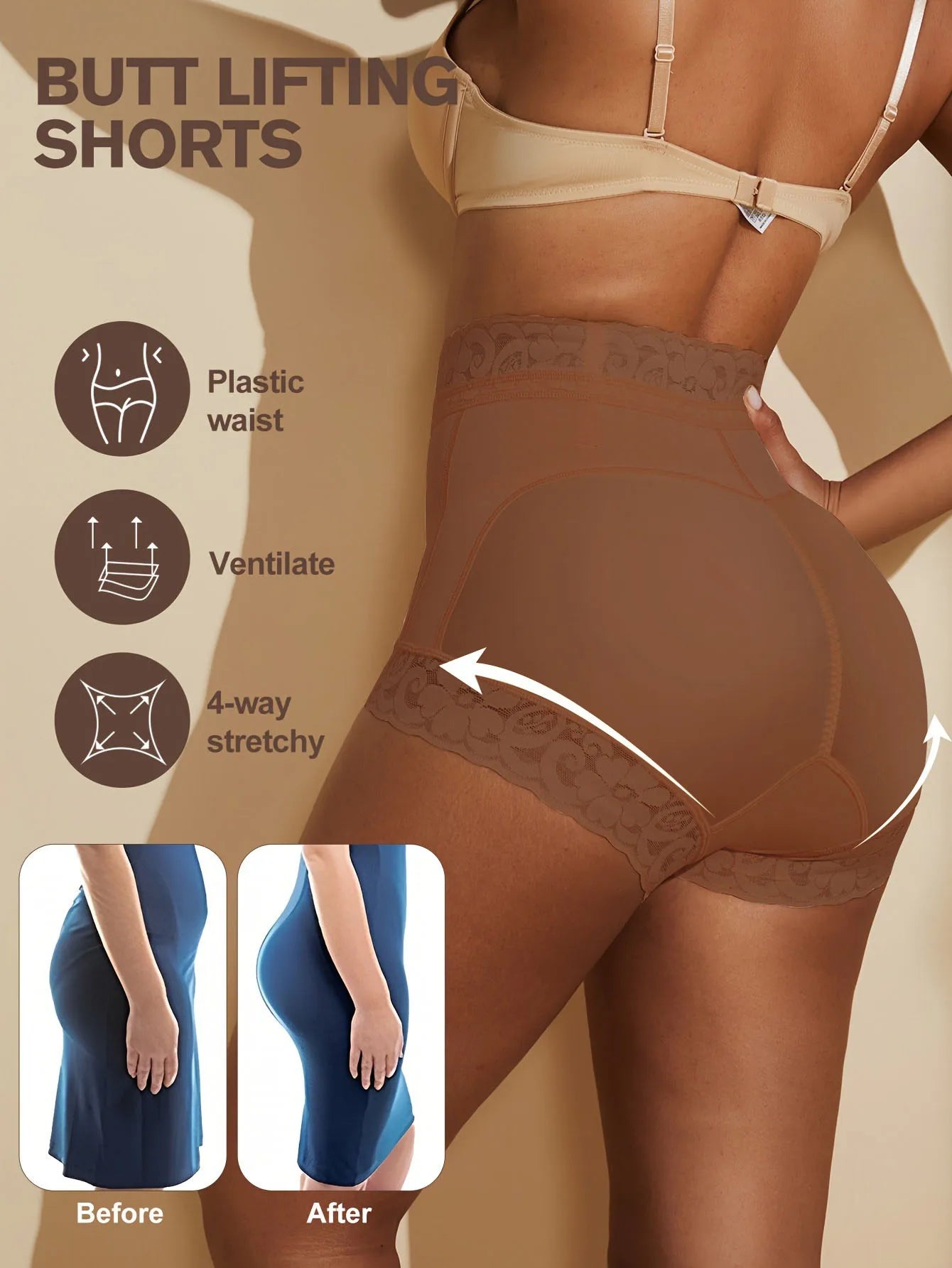 Lace Trim Sculpting Panties, Comfy & Breathable Butt Lifting Panties