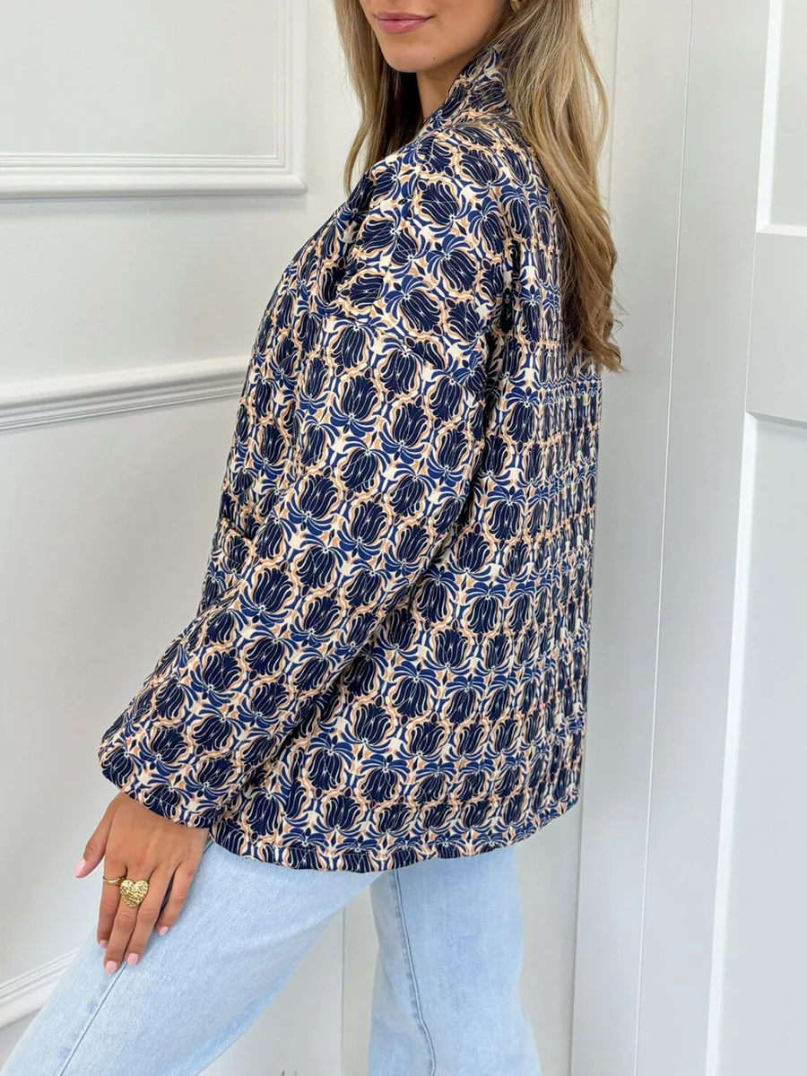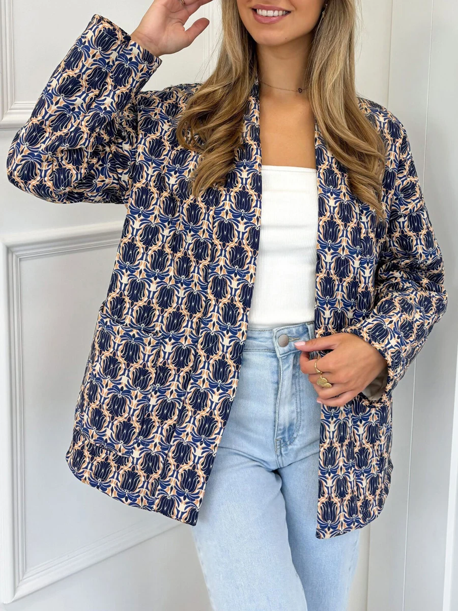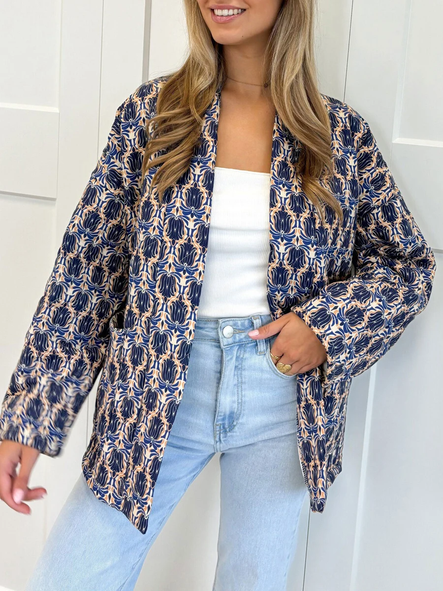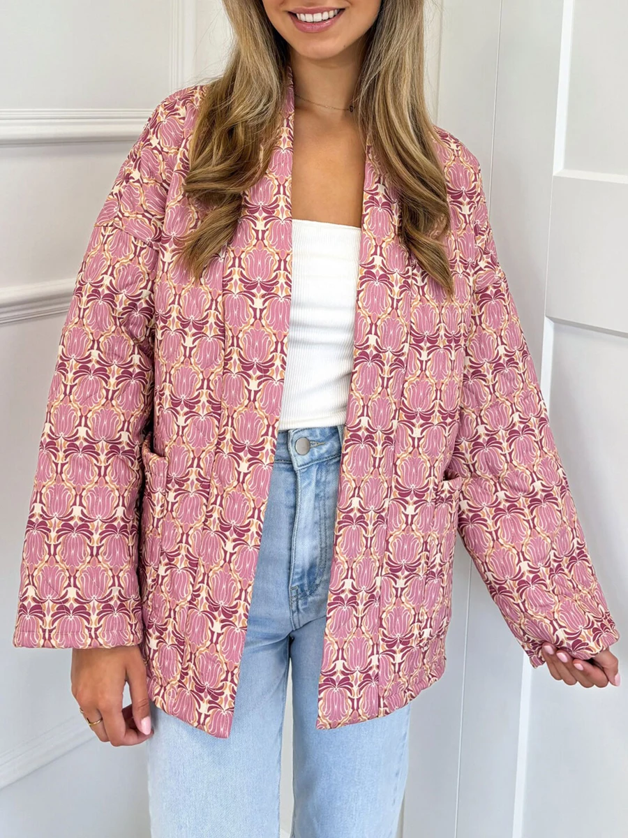 Women Winter Padded Jacket Vintage Print Open Front Quilted Long Sleeve Coat Cardigan
