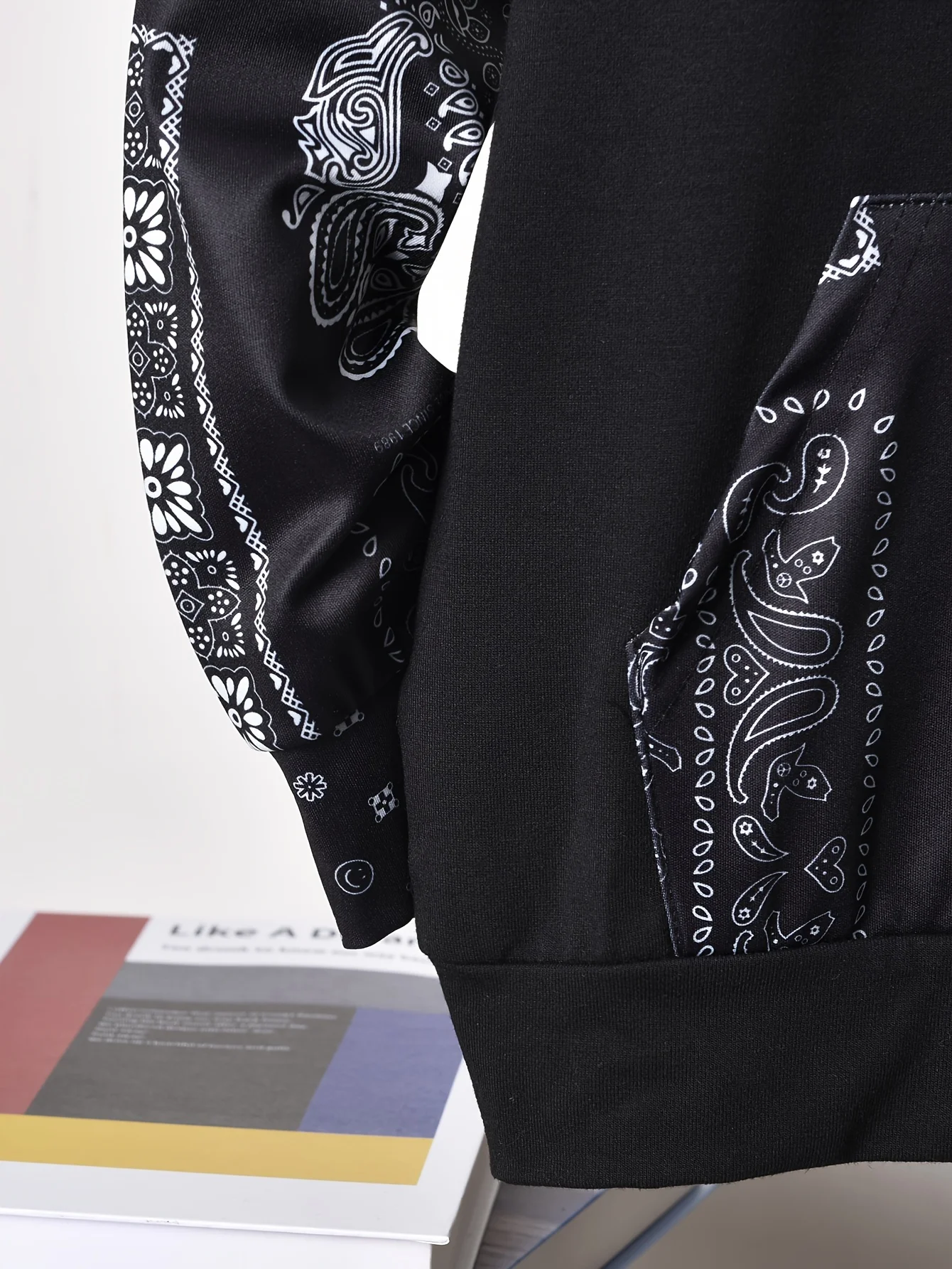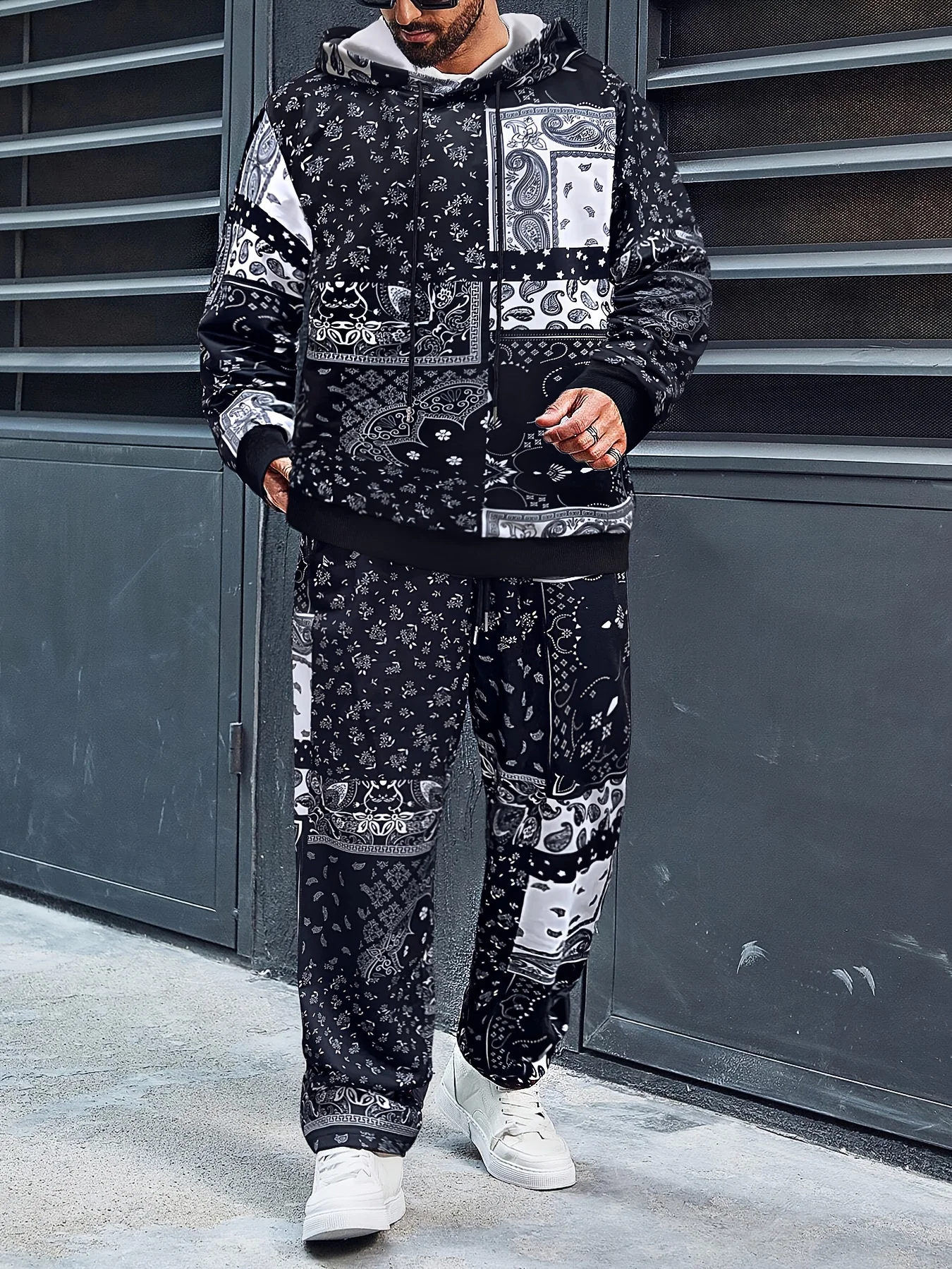 Large Men's 3D Digital Creative Simple Printed Hoodie Set Men's Clothing Thickened and Velvet Hoodie