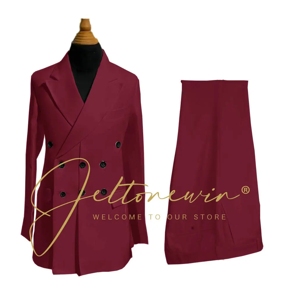 Perfect for prom, parties, weddings, or business events, this men's formal suit combines timeless style with modern sophistication. Featuring a sharp double-breasted closure and regular-length jacket, it’s tailored from a high-quality blend of cotton, microfiber, and viscose for a refined feel and elegant drape. The flat-front trousers with a zipper fly complete the look, making this suit a standout choice for any special occasion.