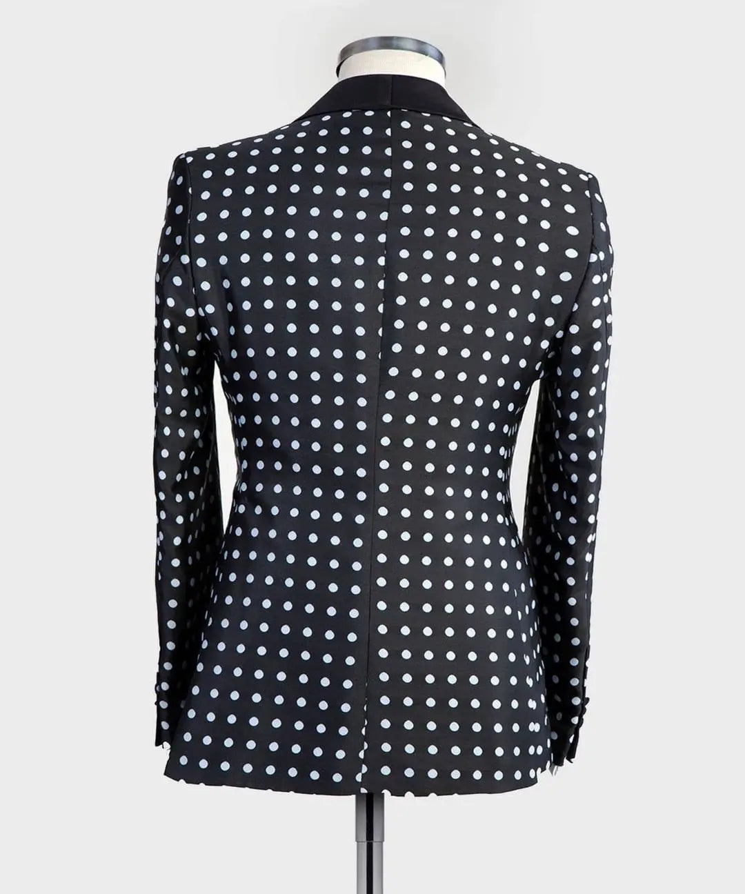 Latest Design Black White Dots Mens Suits For Wedding Shawl Lapel Groom Tuxedos Slim Fit Terno Masculino Prom Party 3 Pieces Set