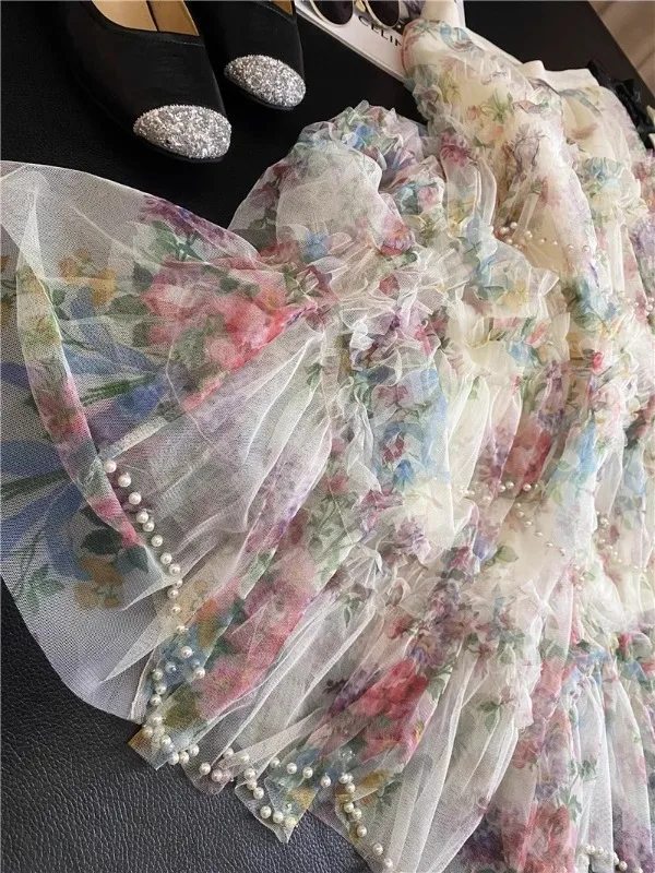 This women’s mid-calf dress features delicate beading decoration and a printed pattern, blending elegance with a casual charm. Designed with a loose fit and ball gown silhouette, it flatters a variety of body types while providing comfort. Made from polyester, it has a natural waistline, making it perfect for everyday wear with a touch of sophistication.