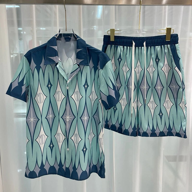 Luxury Men's Social Shirts Sets Fashion Lapel Short Sleeve Top Shorts 2 Piece Outfit Casual Loose Men Suit High Quality Clothing