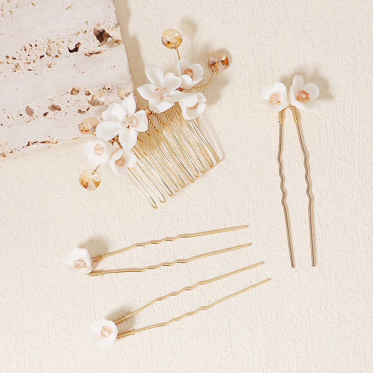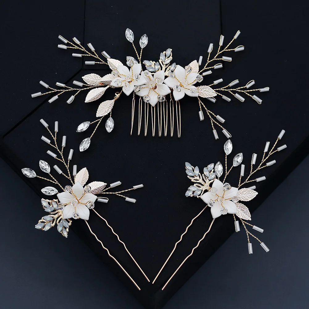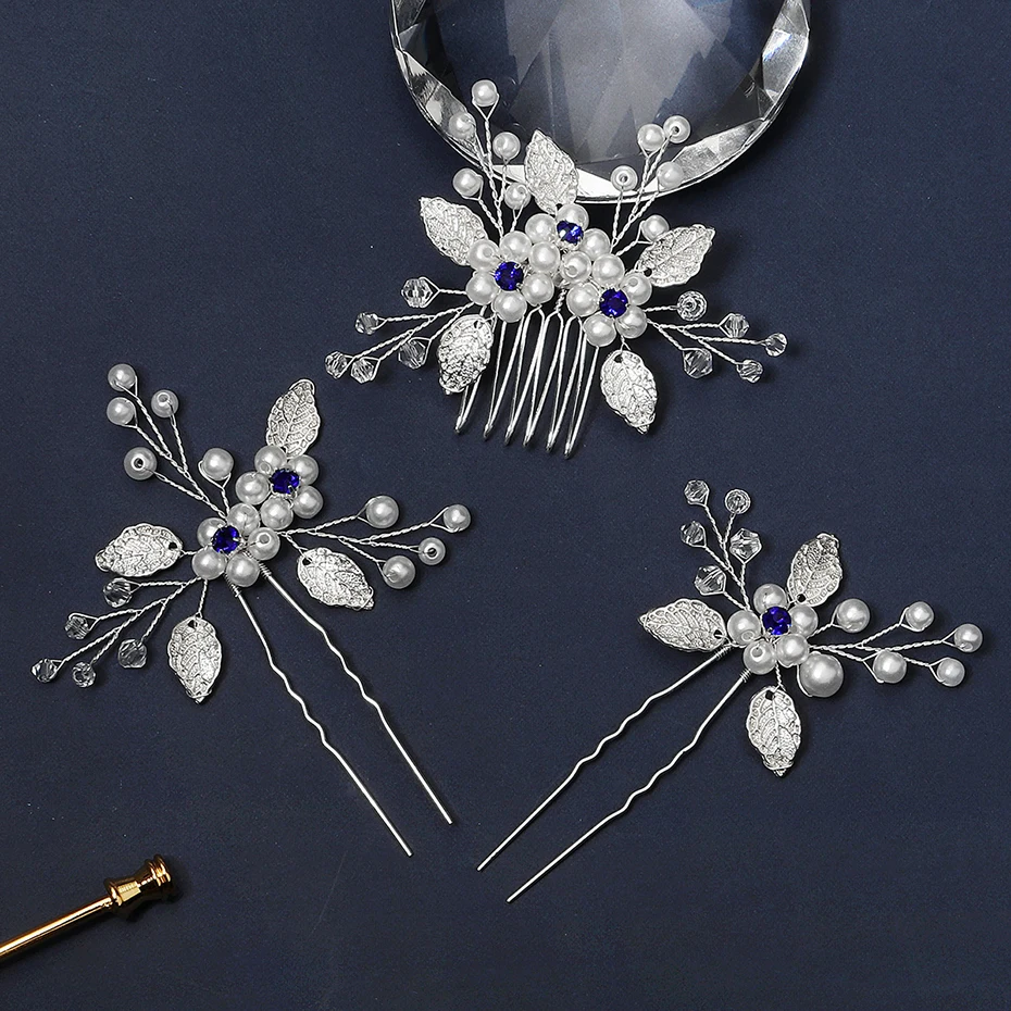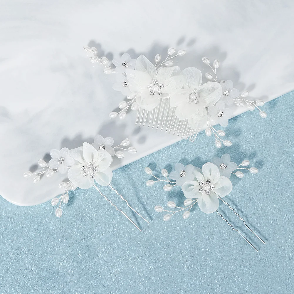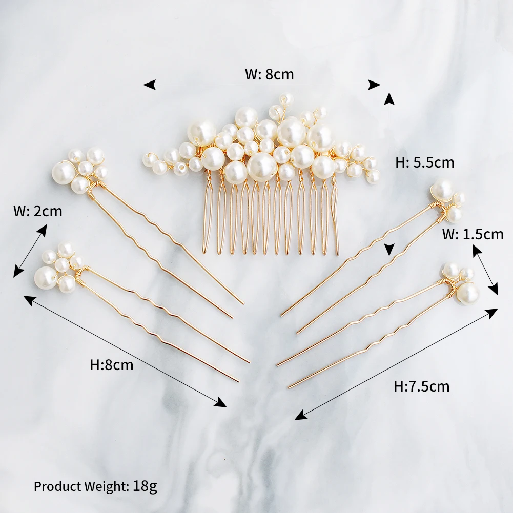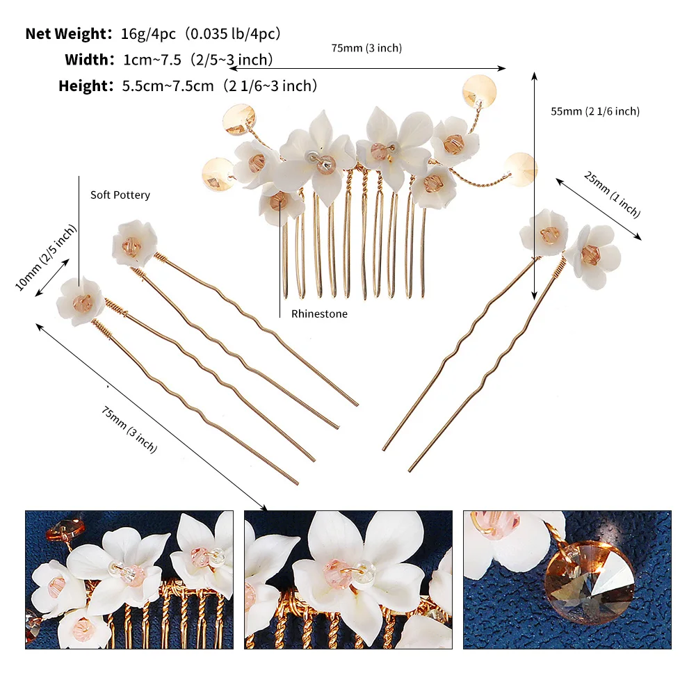 Luxury Pearls Flower Hair Comb Hair Pins Clips Set Cute Hair Fork Headpieces for Women Jewelry Gift Hair Accessory