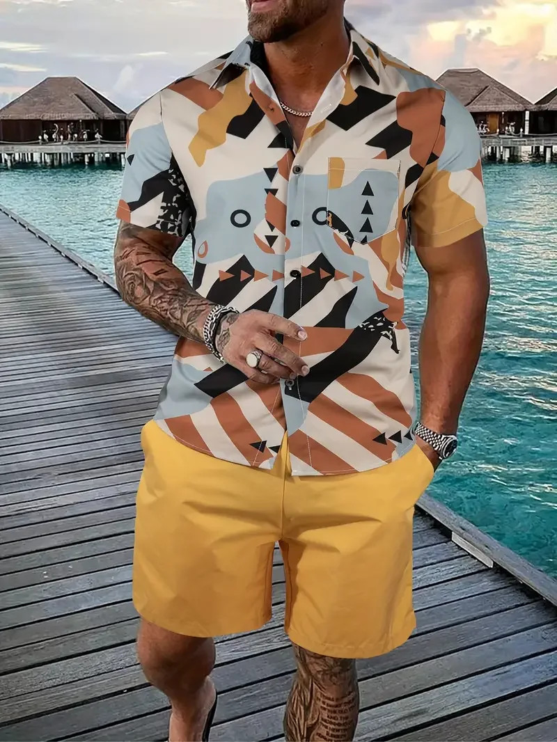 Add a splash of retro flair to your travels with this Men's 3D Printed Floral Shirt Set. Perfect for beach days or vacation strolls, this oversized summer streetwear ensemble features a short-sleeve, single-breasted shirt with eye-catching floral prints and matching beach shorts. Made from lightweight knit polyester with applique accents and a zipper fly, it delivers comfort, style, and breezy vibes for all your spring and summer adventures.