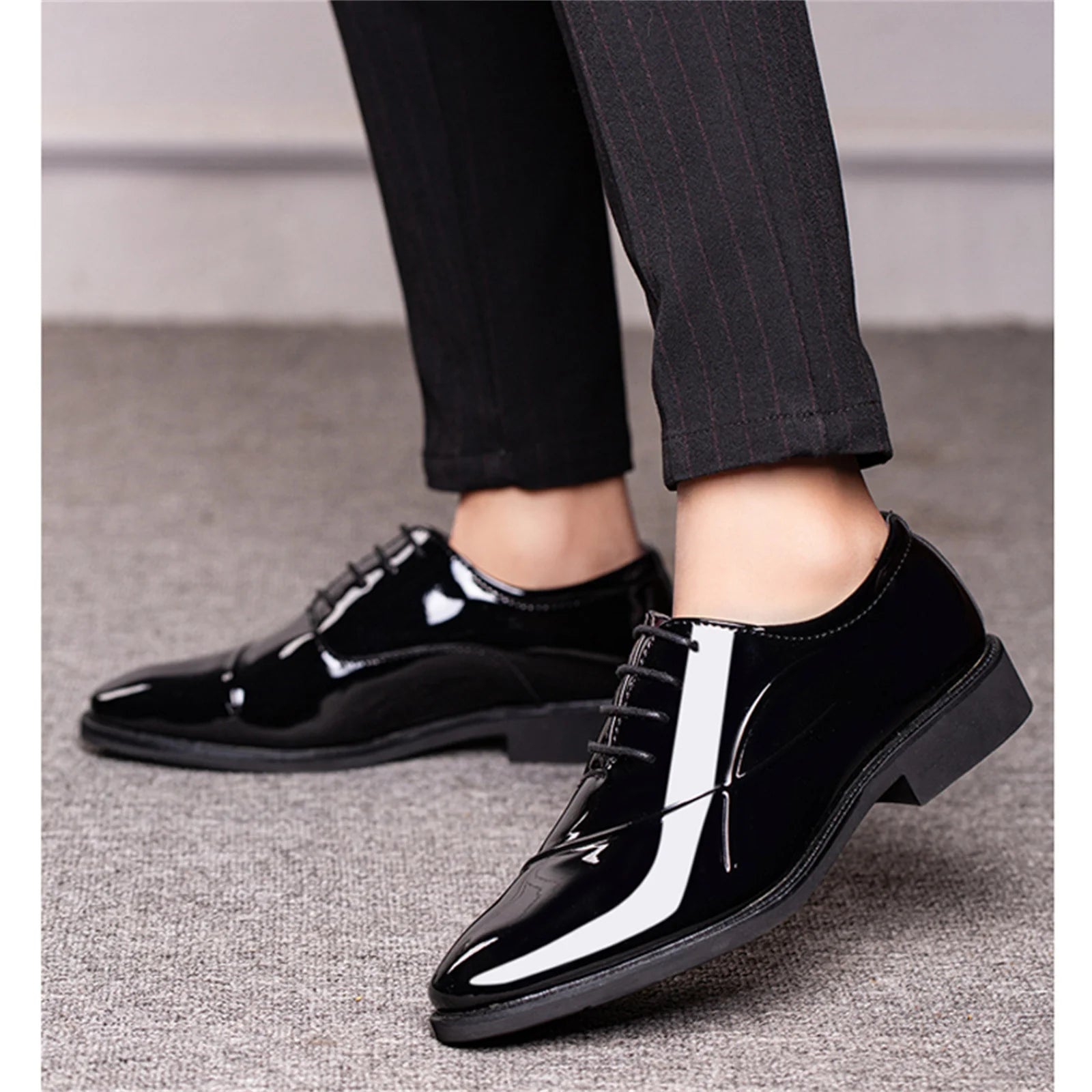 Elevate your everyday style with these men's classic lace-up Oxford dress shoes, designed for both business and casual occasions. Featuring a sleek pointed toe, smooth PU upper, and comfortable PVC insole, these modern Derbys blend formal elegance with daily wearability—perfect for office days, weddings, or upscale outings.
