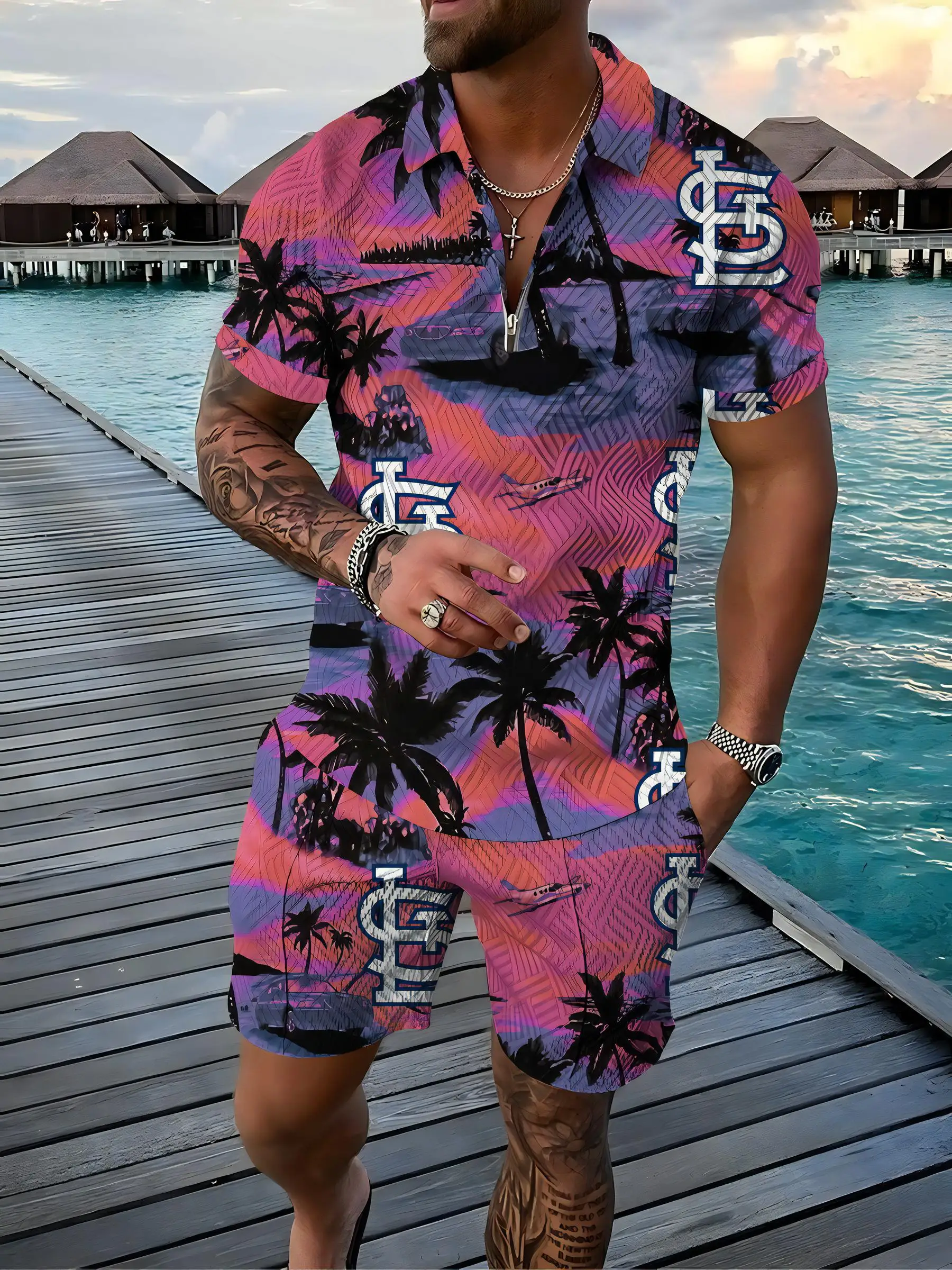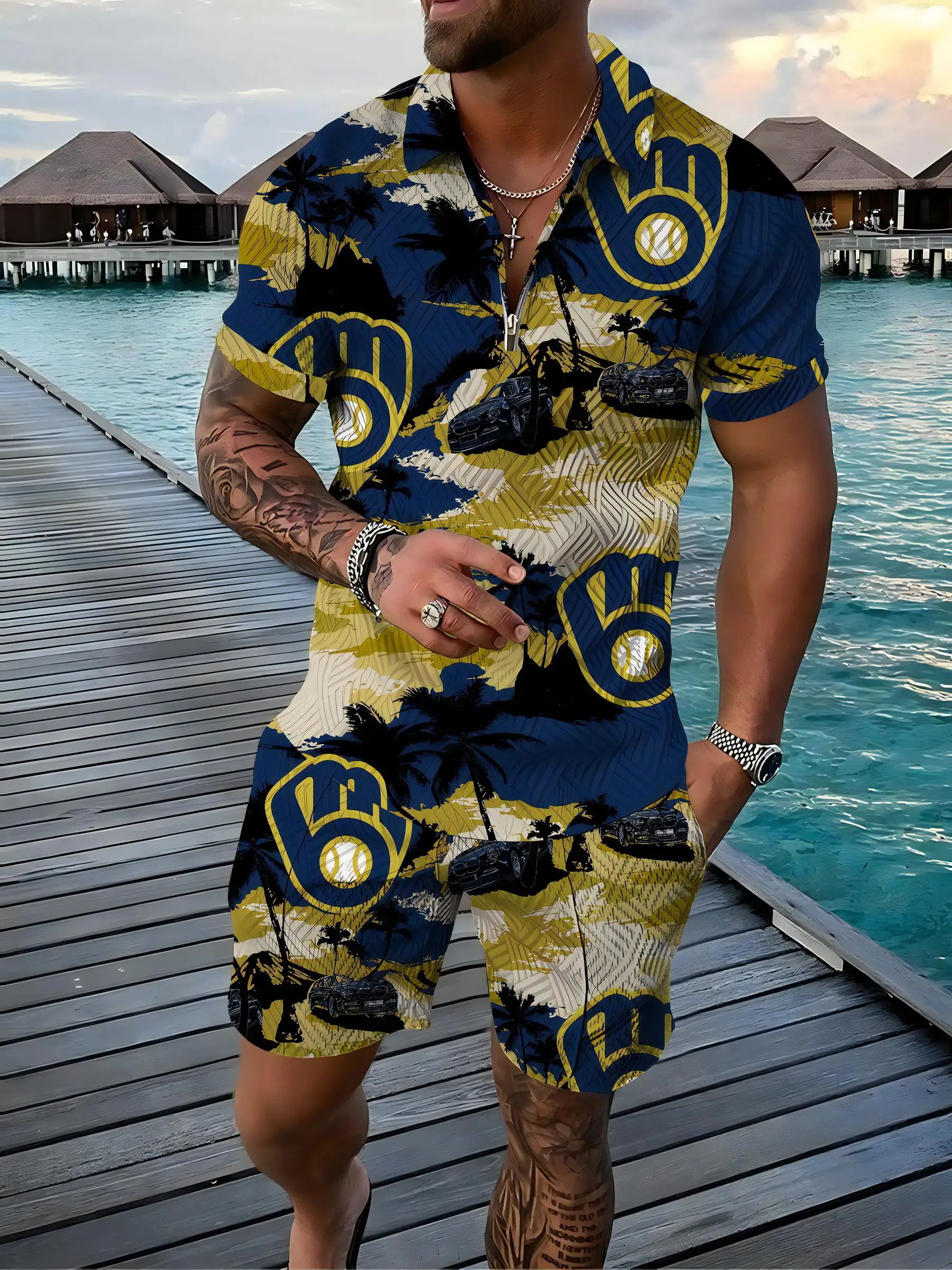 Stay sharp and comfortable on and off the course with this men’s golf suit two-piece set. Perfect for shopping, sports, or relaxing, it includes a casual short sleeve polo-style T-shirt with a modern stand collar and matching drawstring shorts. Made from lightweight polyester with a breathable fit, this spring and summer outfit offers a stylish blend of performance and laid-back ease.