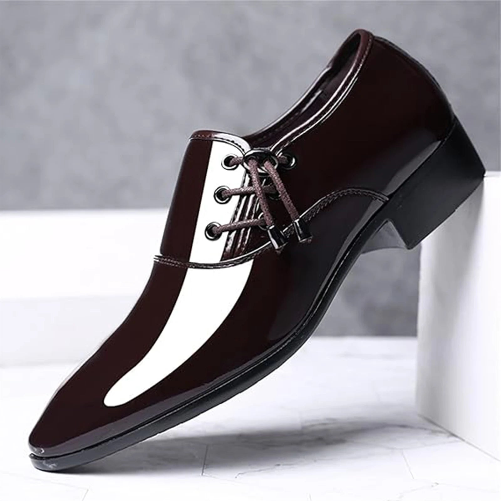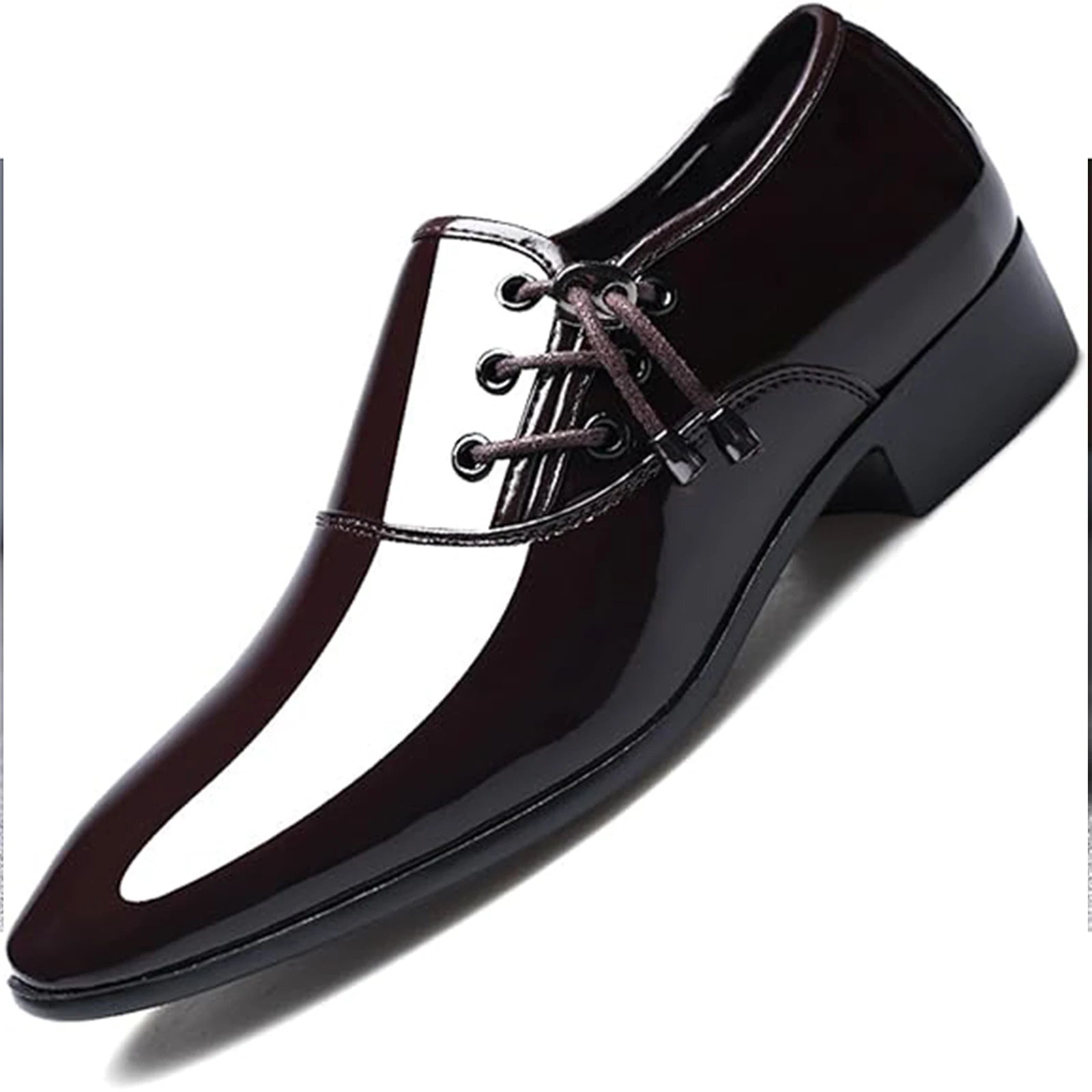 Step out in style and comfort with these men's slip-on loafer Oxford dress shoes, crafted from sleek patent PU leather. Perfect for office, business, or special occasions like proms and weddings, they feature a pointed toe, durable rubber outsole, and cushioned PVC insole for all-day wear during spring and autumn seasons.