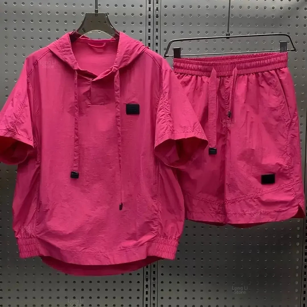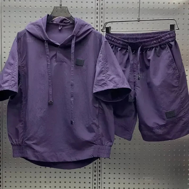 Stay cool and functional with the Namou Drane Men's Casual Two-Piece Set, perfect for summer days and laid-back outings. This lightweight, breathable outfit features a short-sleeve hoodie-style T-shirt and matching cargo-style shorts with practical pockets. Crafted from thin, high-quality polyester, the set offers a relaxed fit and solid color design for effortless everyday style. Ideal for casual wear, sports, or street fashion.