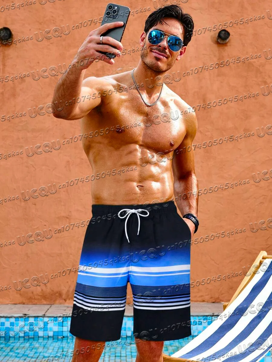 Men'S Striped Minimalist Casual Shorts Summer Beach Swimming And Surfing Shorts Outdoor Fitness&Sports Loose Drawstring Shorts