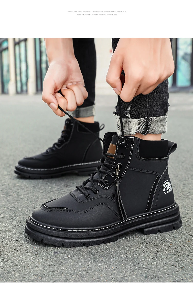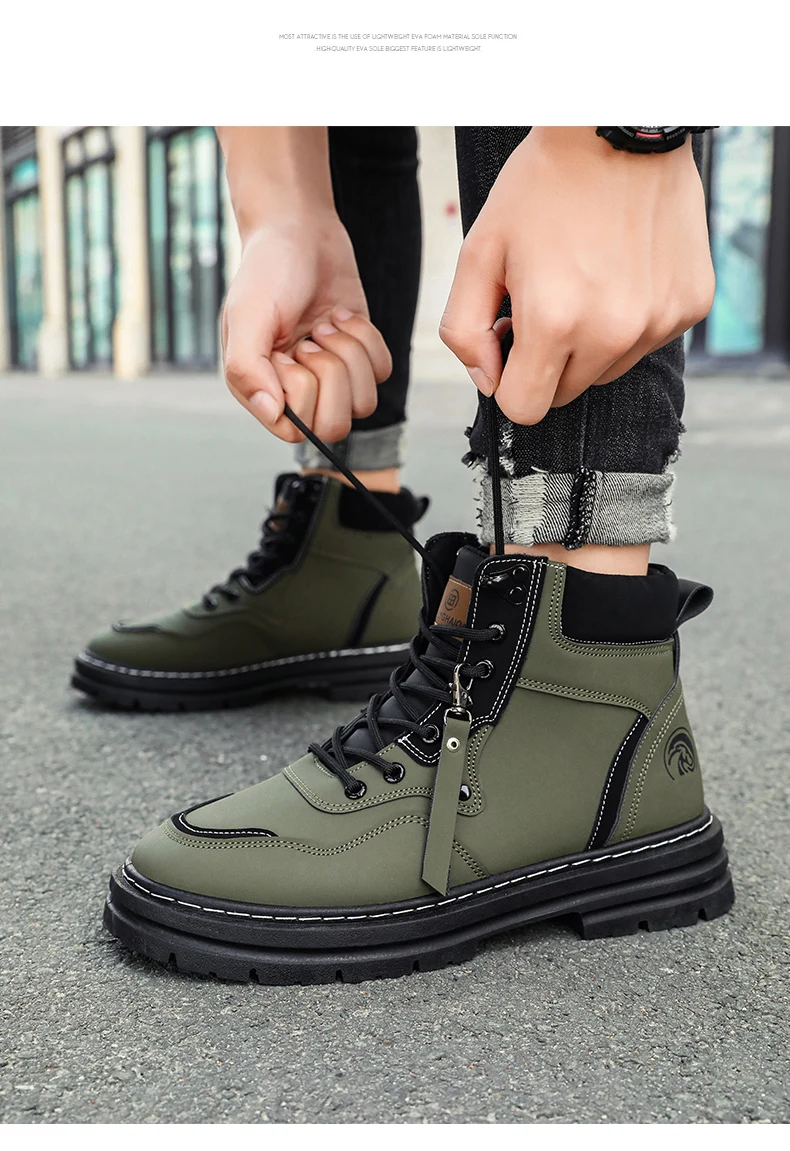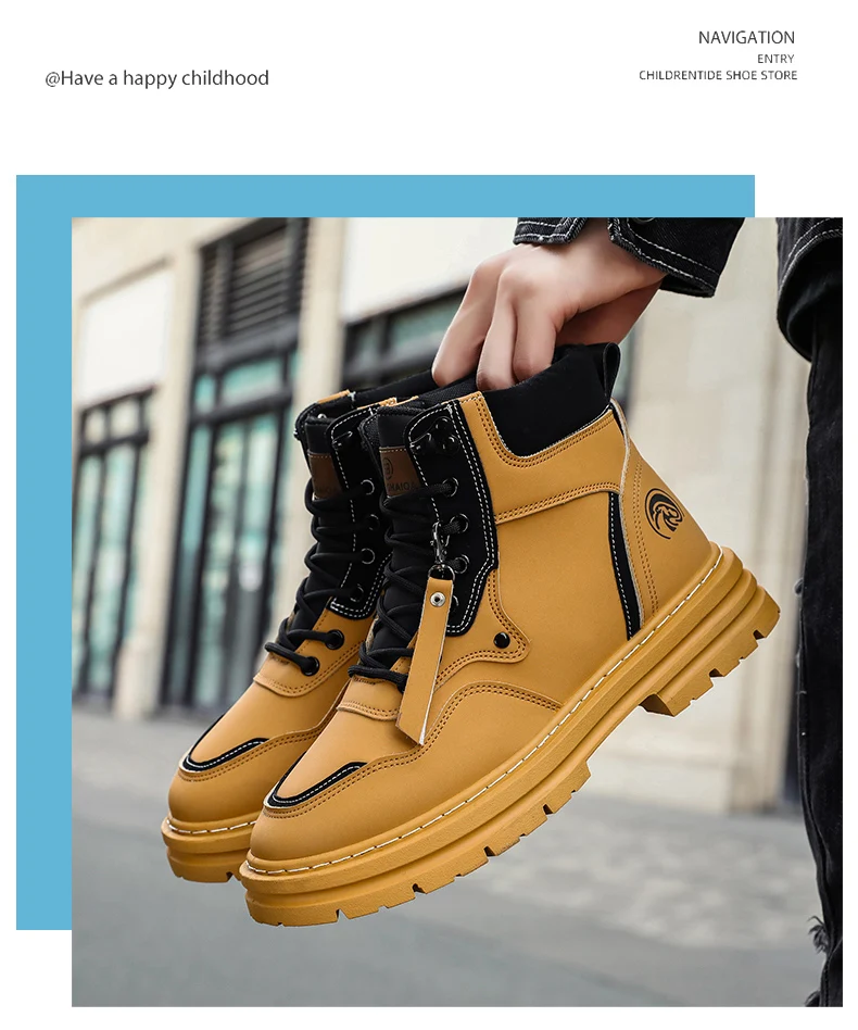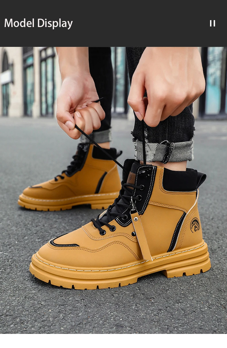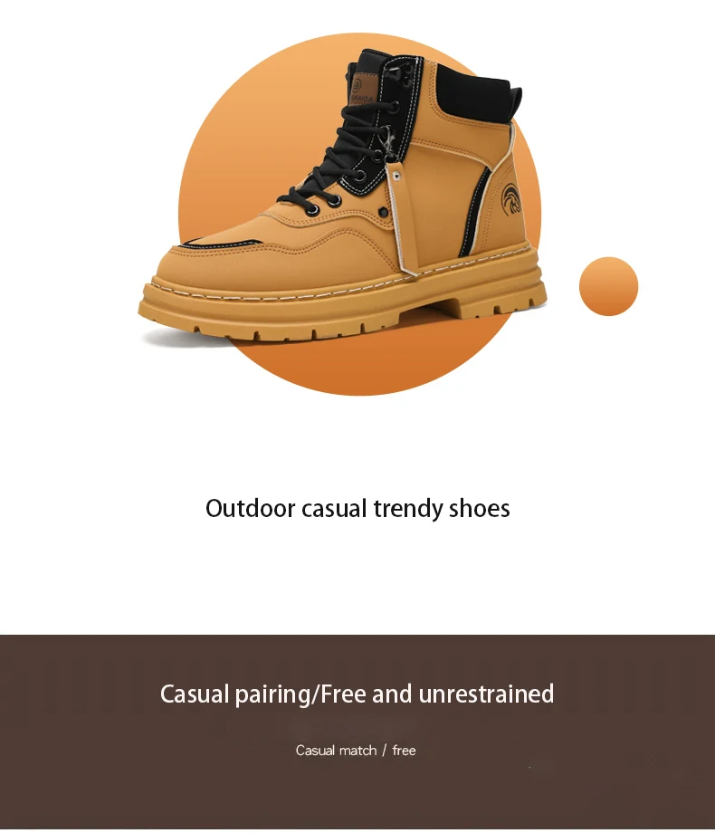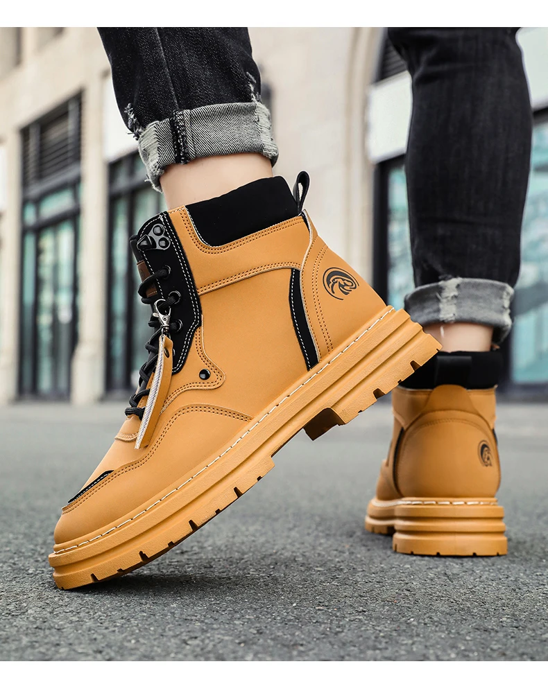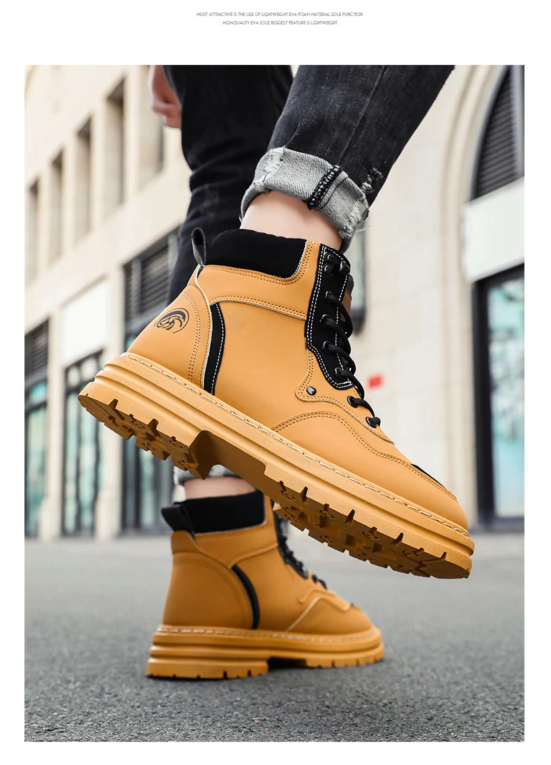Men's thick soled shock-absorbing, wear-resistant, anti slip, retro casual yellow boots are comfortable, lightweight, cold resistant
