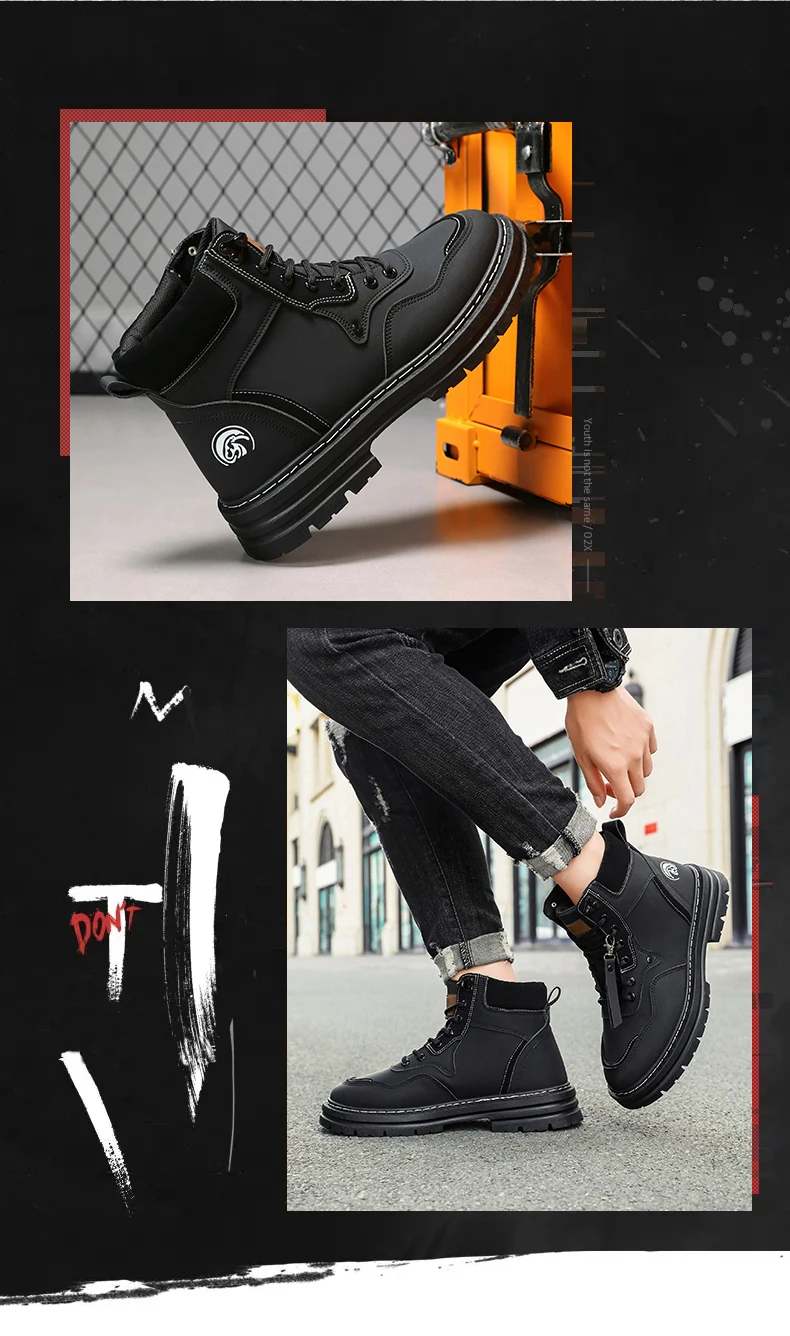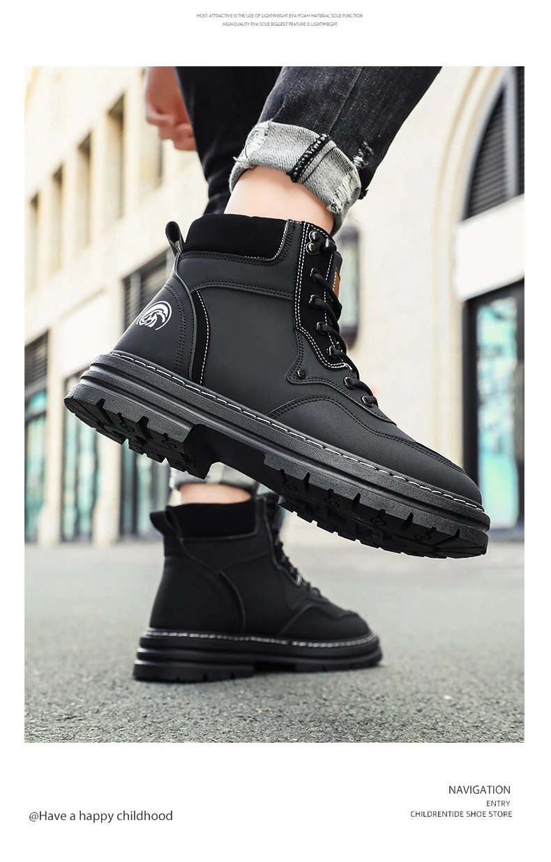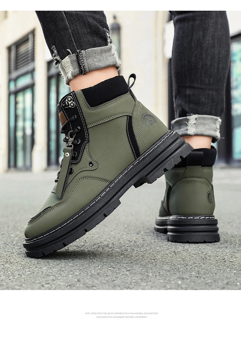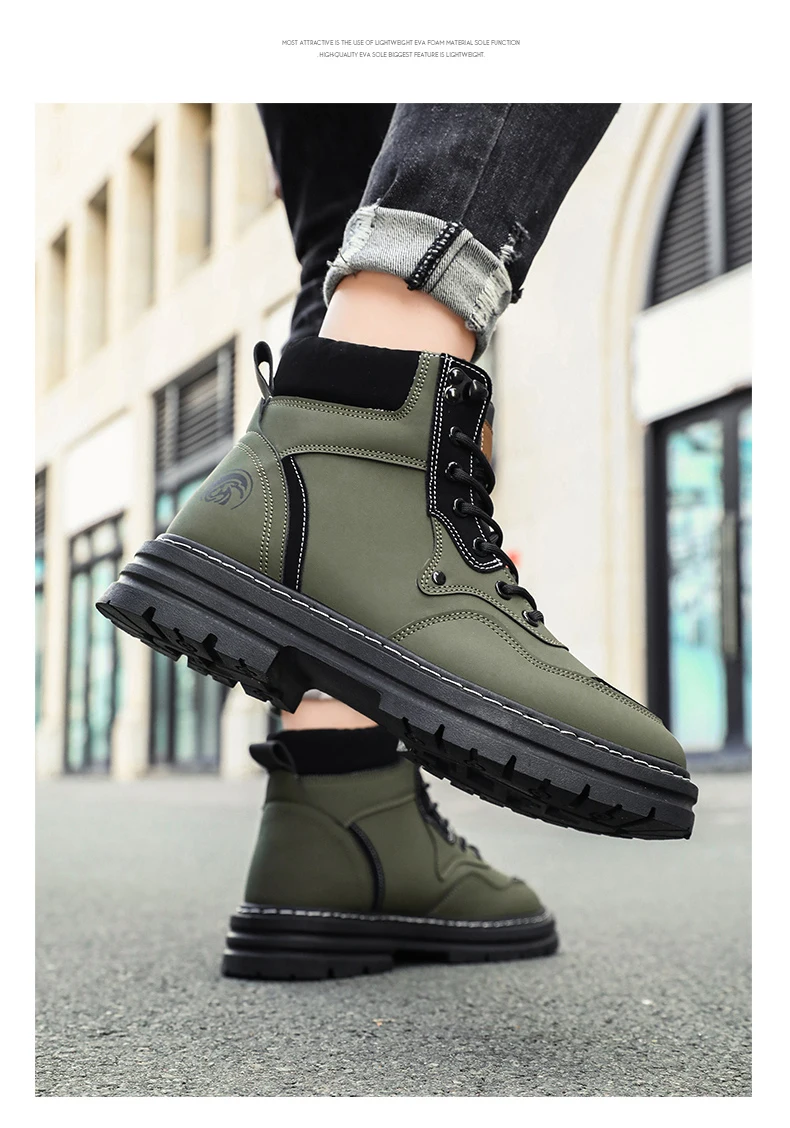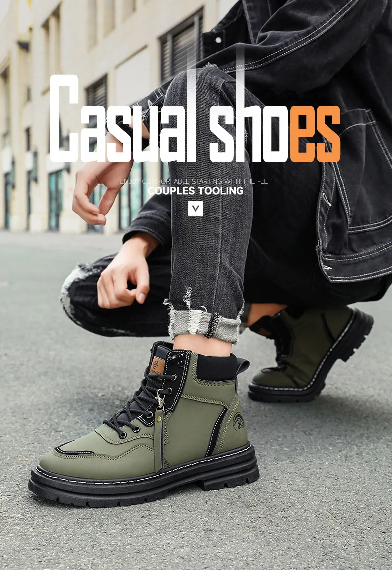 Step out in style and comfort with these Men’s Retro Casual Yellow Outdoor Boots, designed with a thick, shock-absorbing sole for maximum wear resistance and slip protection. Featuring a lightweight, cold-resistant build, these ankle-high boots combine a durable artificial leather upper with a breathable canvas shaft and lining. The convenient elastic band closure and fashionable ankle strap ensure a snug fit, while the cushioned EVA insole and sturdy PVC outsole deliver all-day comfort and reliable traction. Perfect for everyday wear with a touch of British-inspired flair.