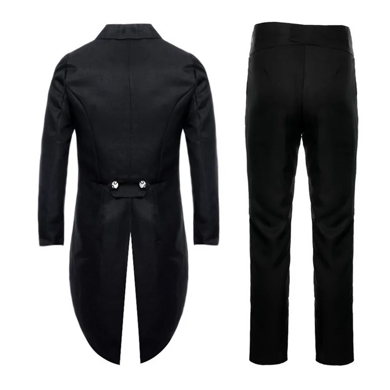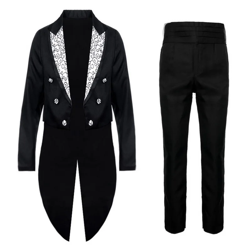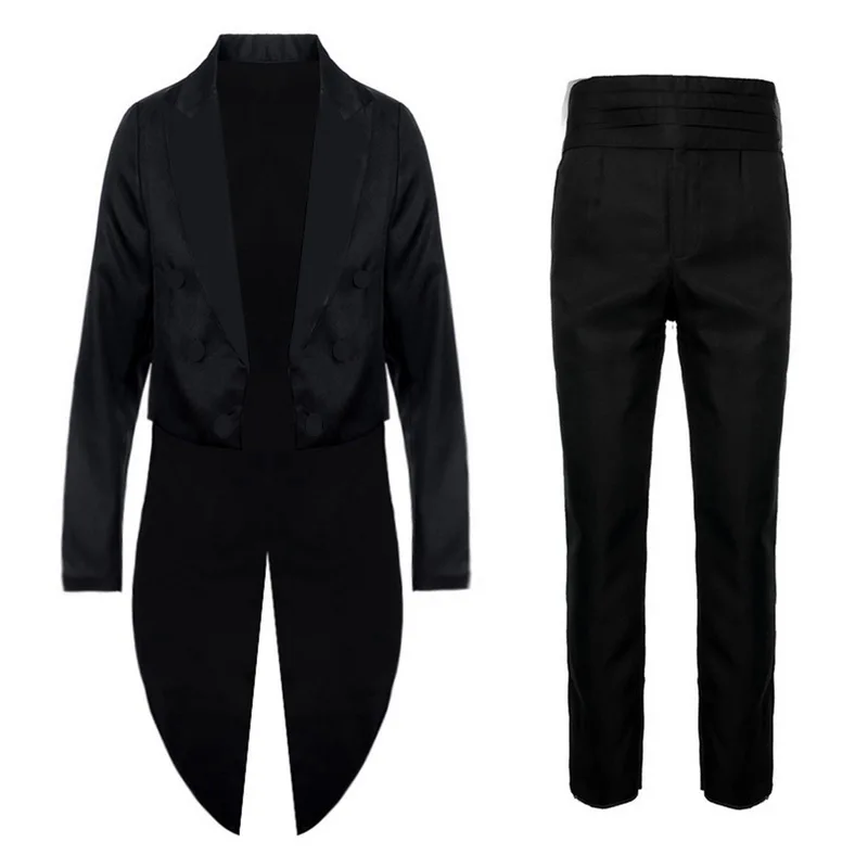 Make a bold and timeless statement with this Men's Classic Formal Tailcoat Tuxedo Set. Designed for weddings, proms, and upscale parties, this 2-piece suit includes a double-breasted tailcoat jacket and matching flat-front pants with a zipper fly. Available in striking black, white, and red options, this formal tuxedo is crafted from quality polyester for a sleek finish and comfortable wear. With sizes ranging from XXS to XL, it offers a sharp fit for any occasion where elegance and style are a must.