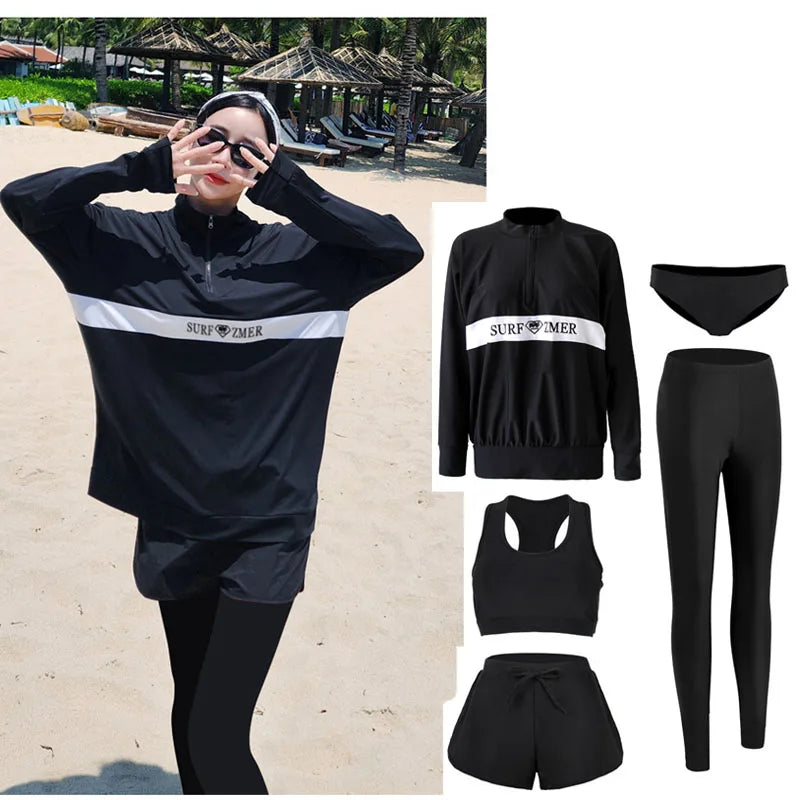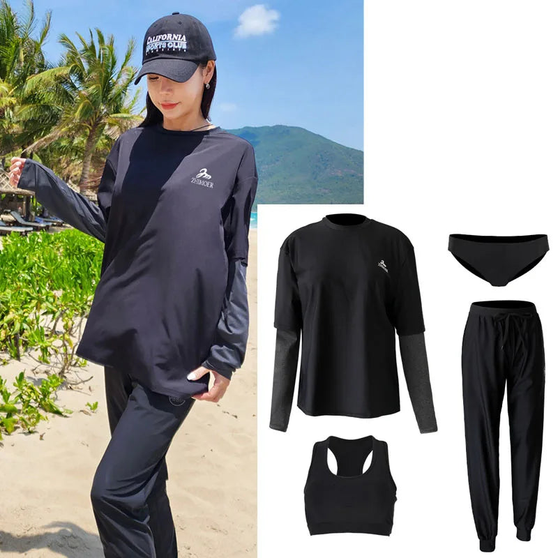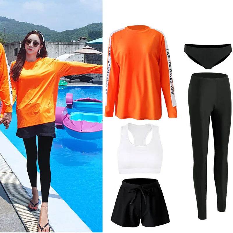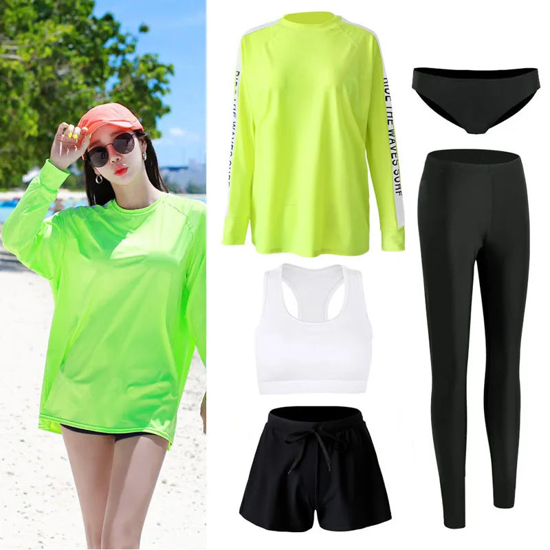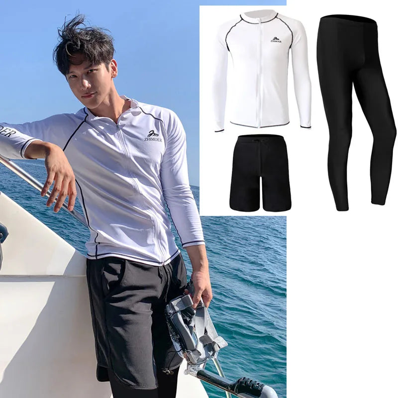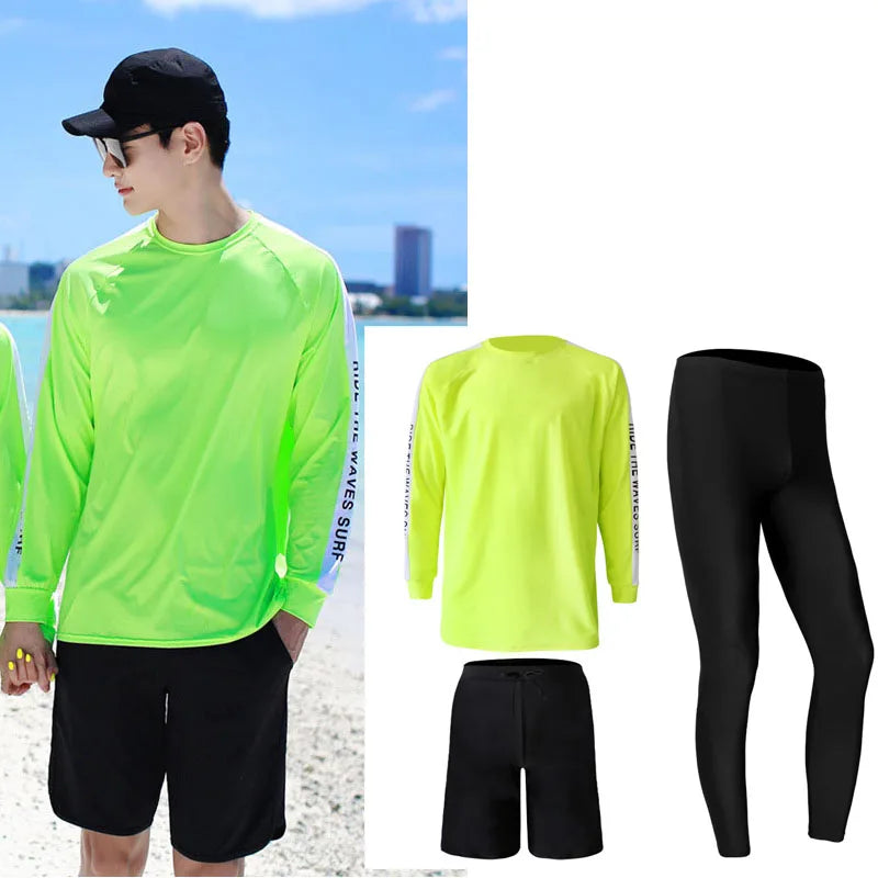 Men's Women's 3-5pcs/set Long Sleeve Rash Guards Loose Fit Swim Shirt UV Sun Protection Swimsuit Top&Bottom Fishing Run Sunsuit