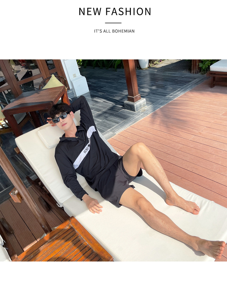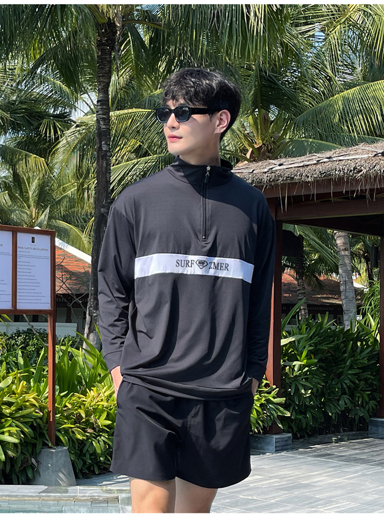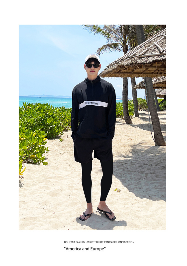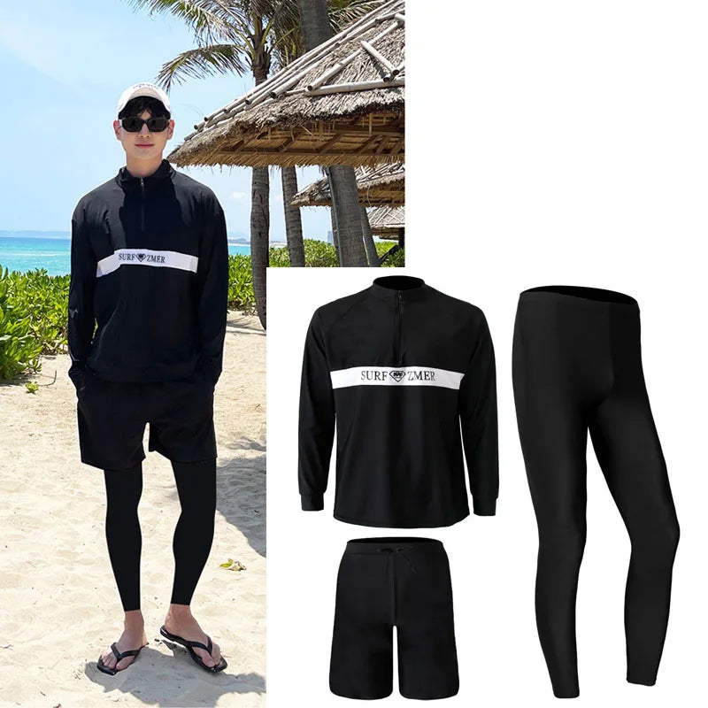 Men's model including 3 pieces: 1pc Shirt + 1pc Trunks + 1pc Leggings
