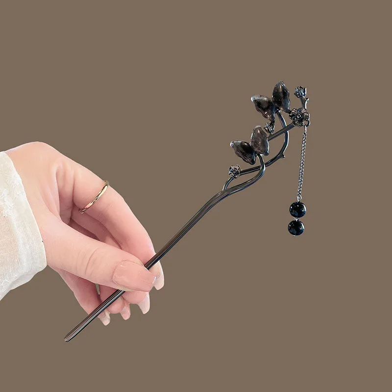 Elevate your hairstyle with this classic floral metal hair stick for women. Featuring a modern ink flower design with beads and fringe tassels, this hairpin adds a touch of elegance and sophistication, perfect for securing your hair in a stylish and decorative way.