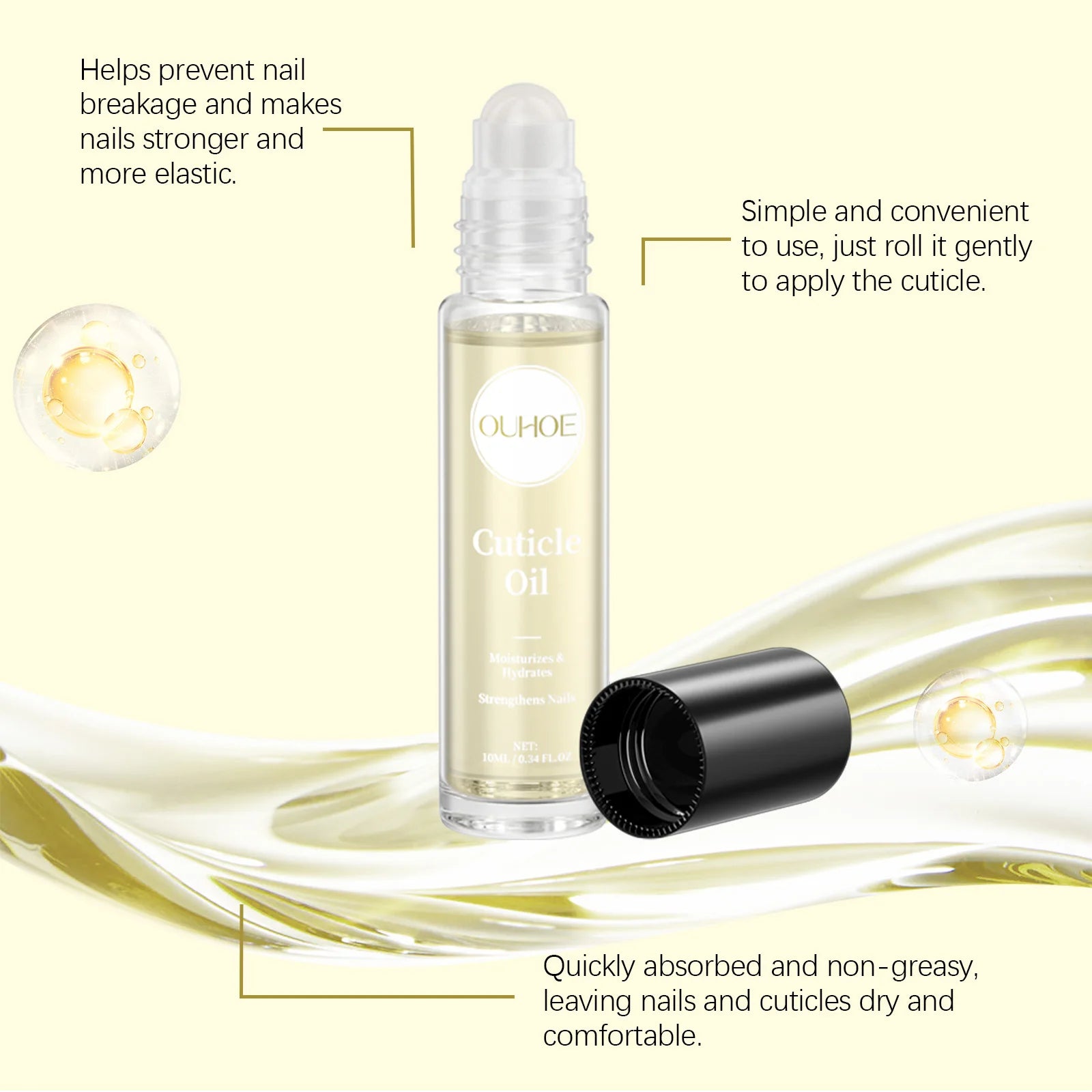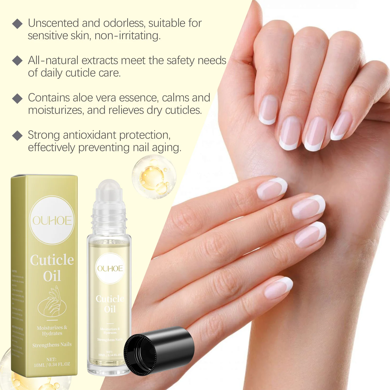 【Deep Moisturization and Strong Nails】OUHOE Nail Care Oil Roller is rich in glycerin and aloe vera leaf extract. It can continuously lock in moisture, deeply moisturize the cuticle, and keep the skin around the nails hydrated all the time. Meanwhile, it effectively strengthens the nails, reducing the trouble of nail breakage and making the nails healthier and stronger.