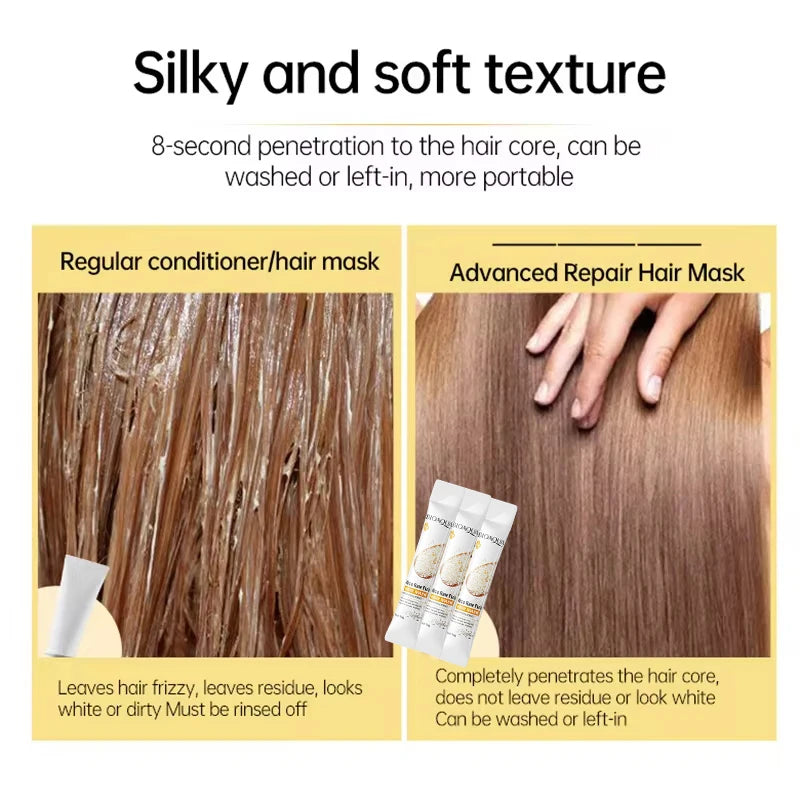 The Magical Hair Mask 5 Seconds Repair is a cutting-edge solution developed from research on over 10,000 consumers' hair conditions. By combining high-tech, imported raw materials with fine molecular technology, this mask transforms your hair in just 5 seconds, leaving it smooth and soft. It repairs damaged, dyed, permed, or dry hair, deeply moisturizing and hydrating it to restore vitality and softness. Perfect for all hair types, the mask helps to improve scalp health, smooth curly hair, and reduce split ends. With its easy-to-use formula and natural rice extract, it provides deep nourishment, making your hair shiny, soft, and beautifully repaired. Ideal for hair treatment, keratin care, and deep nourishment.