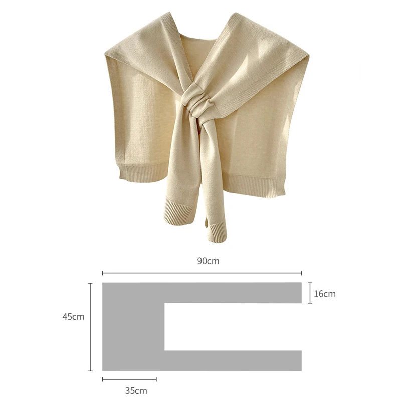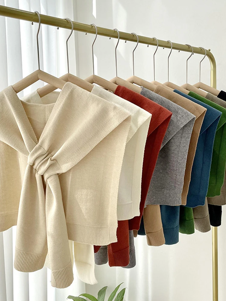 Neck Guard Scarf Solid Color Woman's Knitted Warm Shawl Winter Wool Shoulders Fake Collar Cape Knotted Scarf