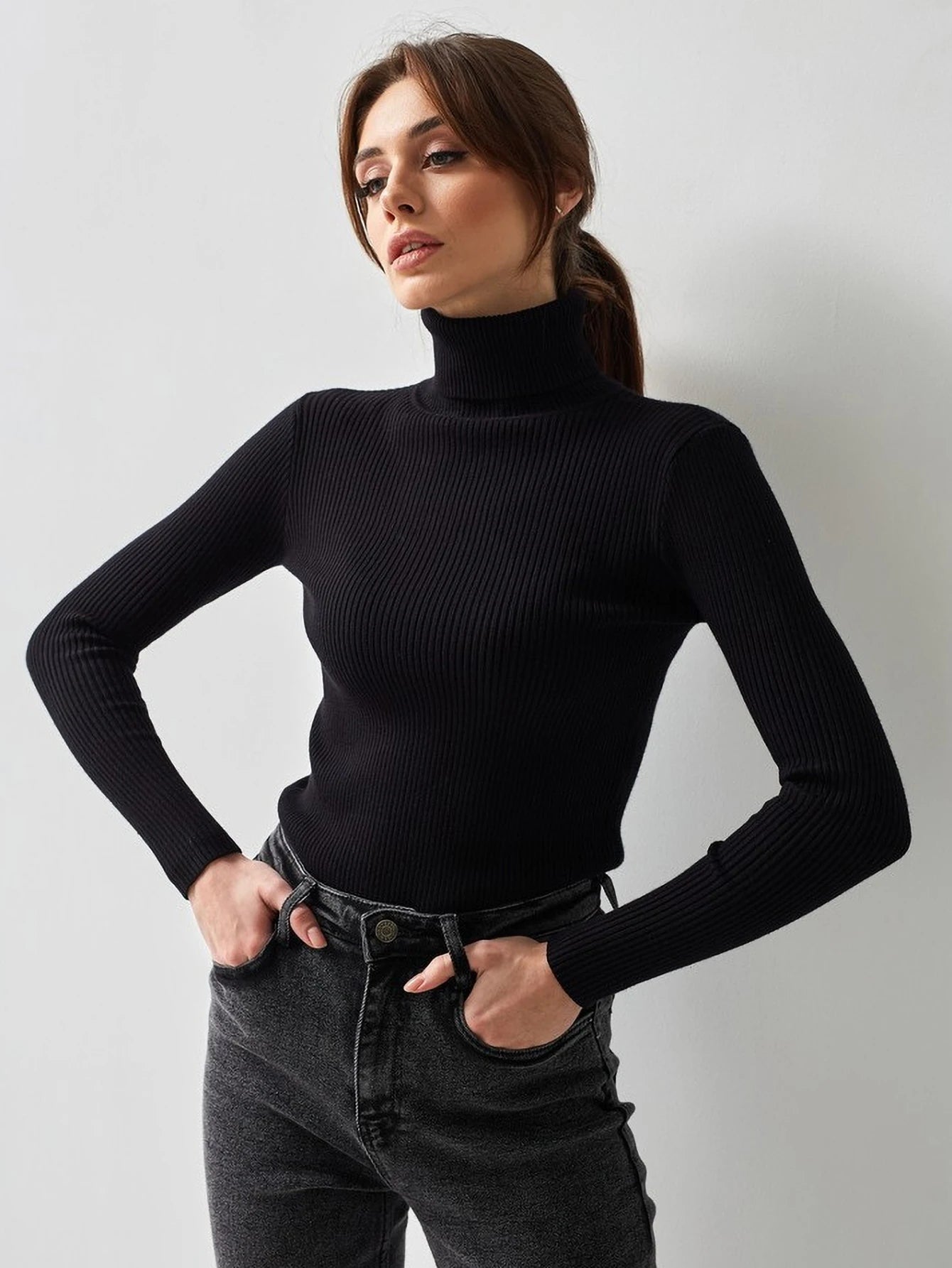 This high street-inspired turtleneck sweater is a chic and versatile addition to your wardrobe, combining comfort with a sleek, modern style. This sweater is perfect for a polished, fashionable look that works seamlessly in both casual and slightly dressier settings. Pair it with skirts, high-waisted jeans, or layered under coats for a trendy high street vibe!