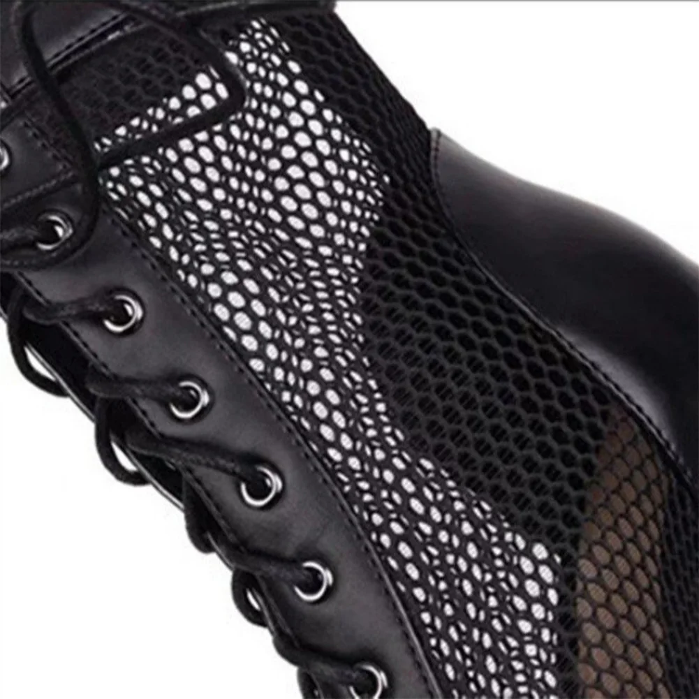 New Sexy High Heels Hollow Mesh Heels Summer Fashion Trend Comfort Peep Toe Boots Stilettos Jazz Dance Female Shoes Plus Size