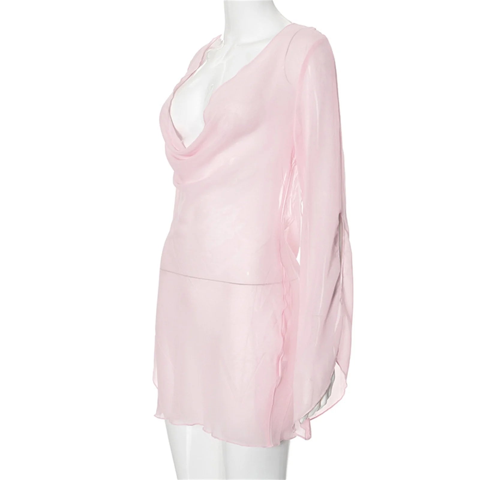 Nightgown Sheer Mesh Cowl Neck Backless Babydoll Dress for Sleepwear
