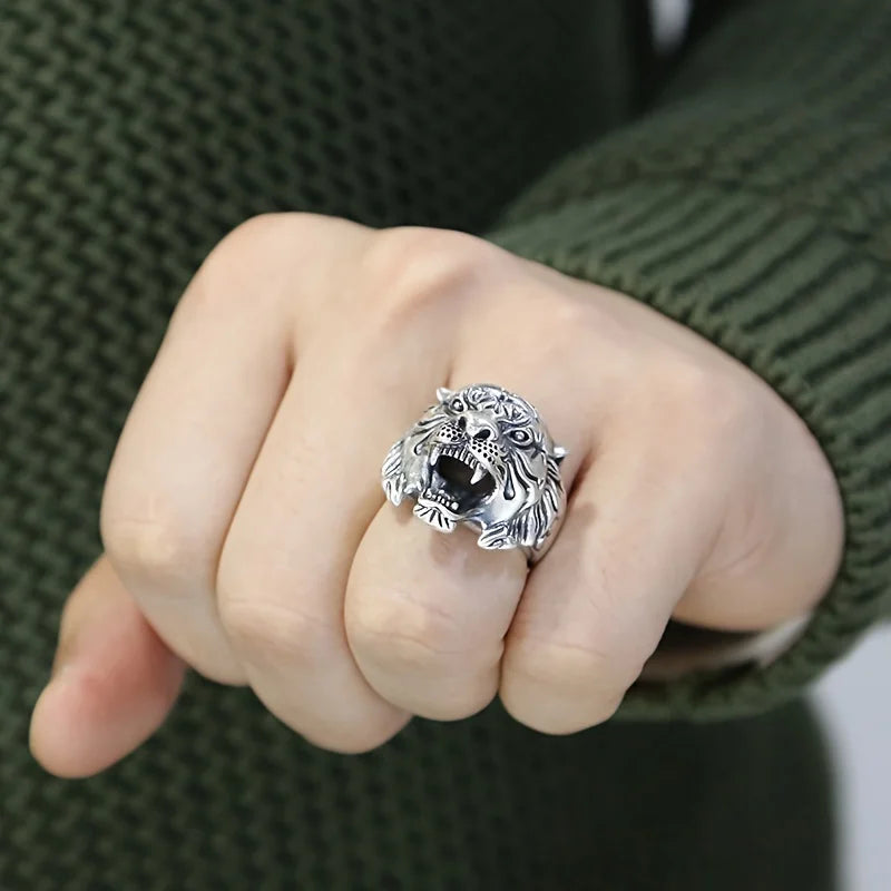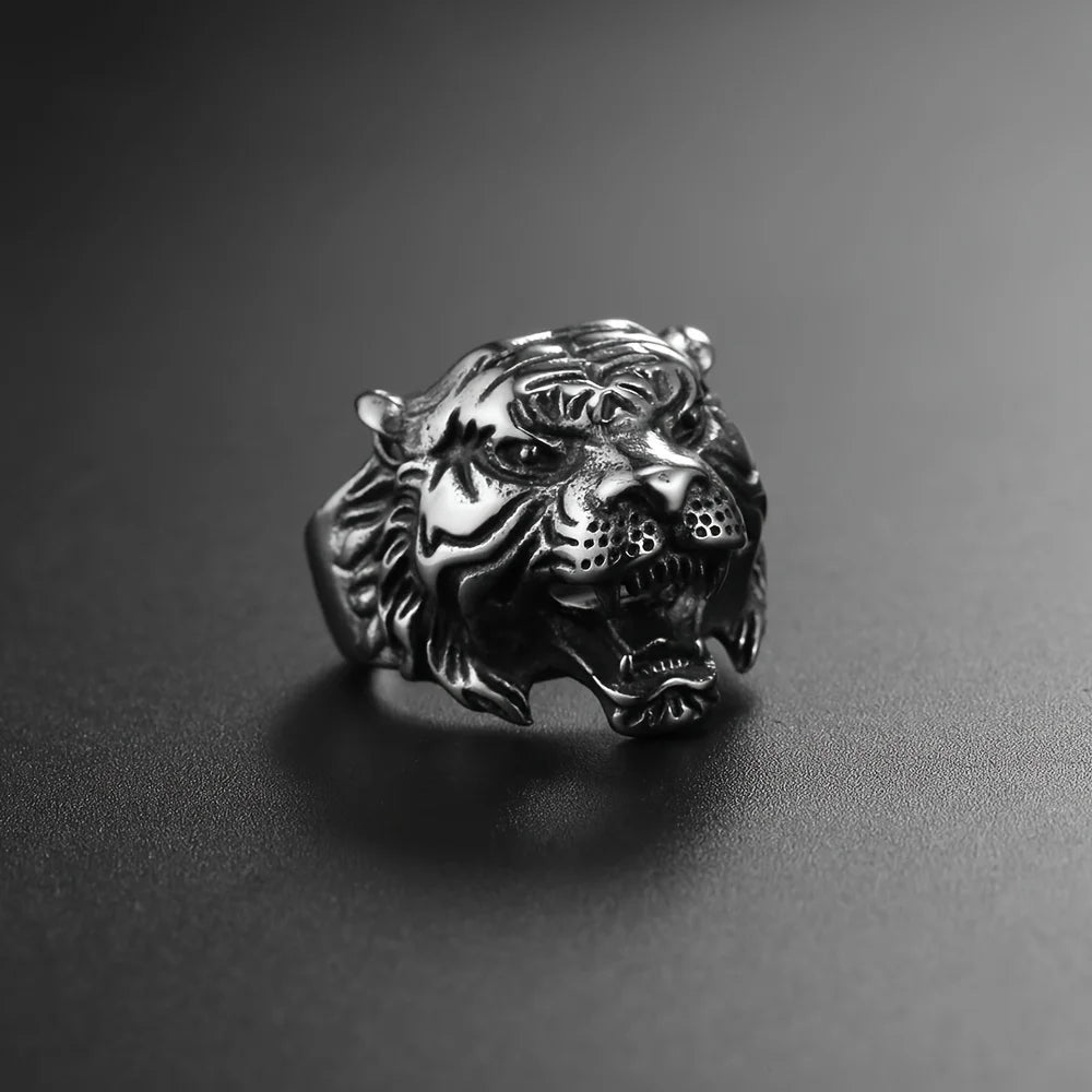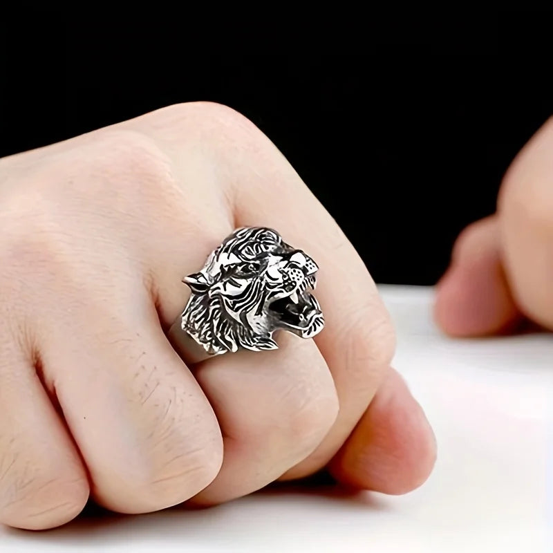 Unleash your wild side with this domineering Tiger Head Ring, crafted from durable zinc alloy metal. This creative, open-design men's ring features a fierce tiger head motif, blending retro style with bold personalization. Perfect for men who want to make a powerful fashion statement with unique, animal-inspired jewelry.